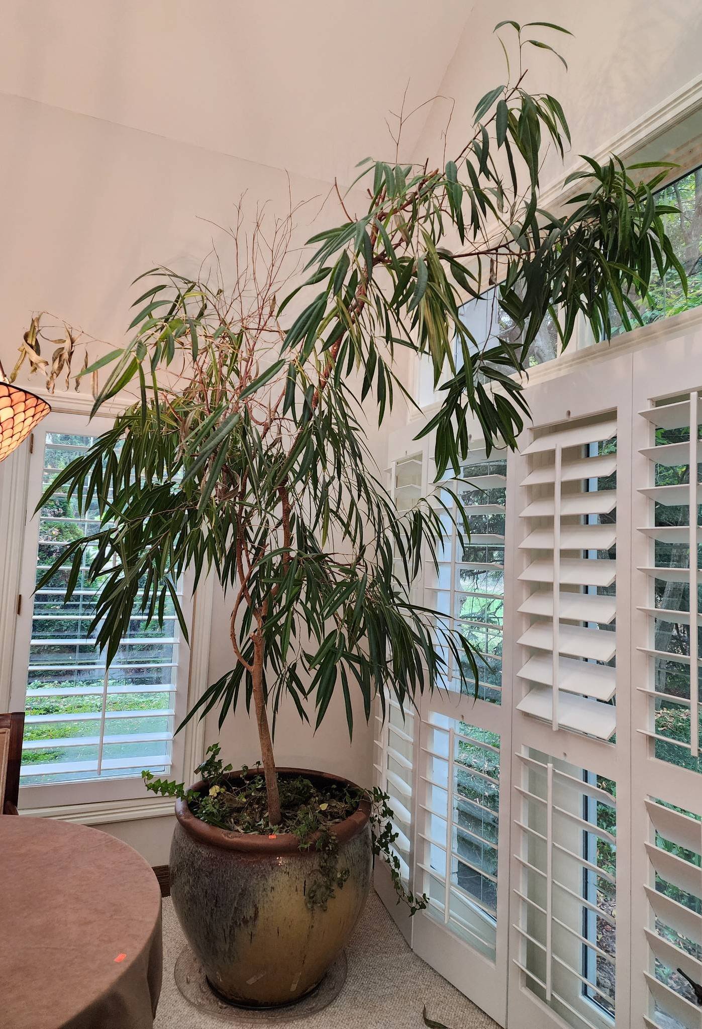 106 Potted Indoor Tree (8’4? T) with Glazed Pot, 28?x24?