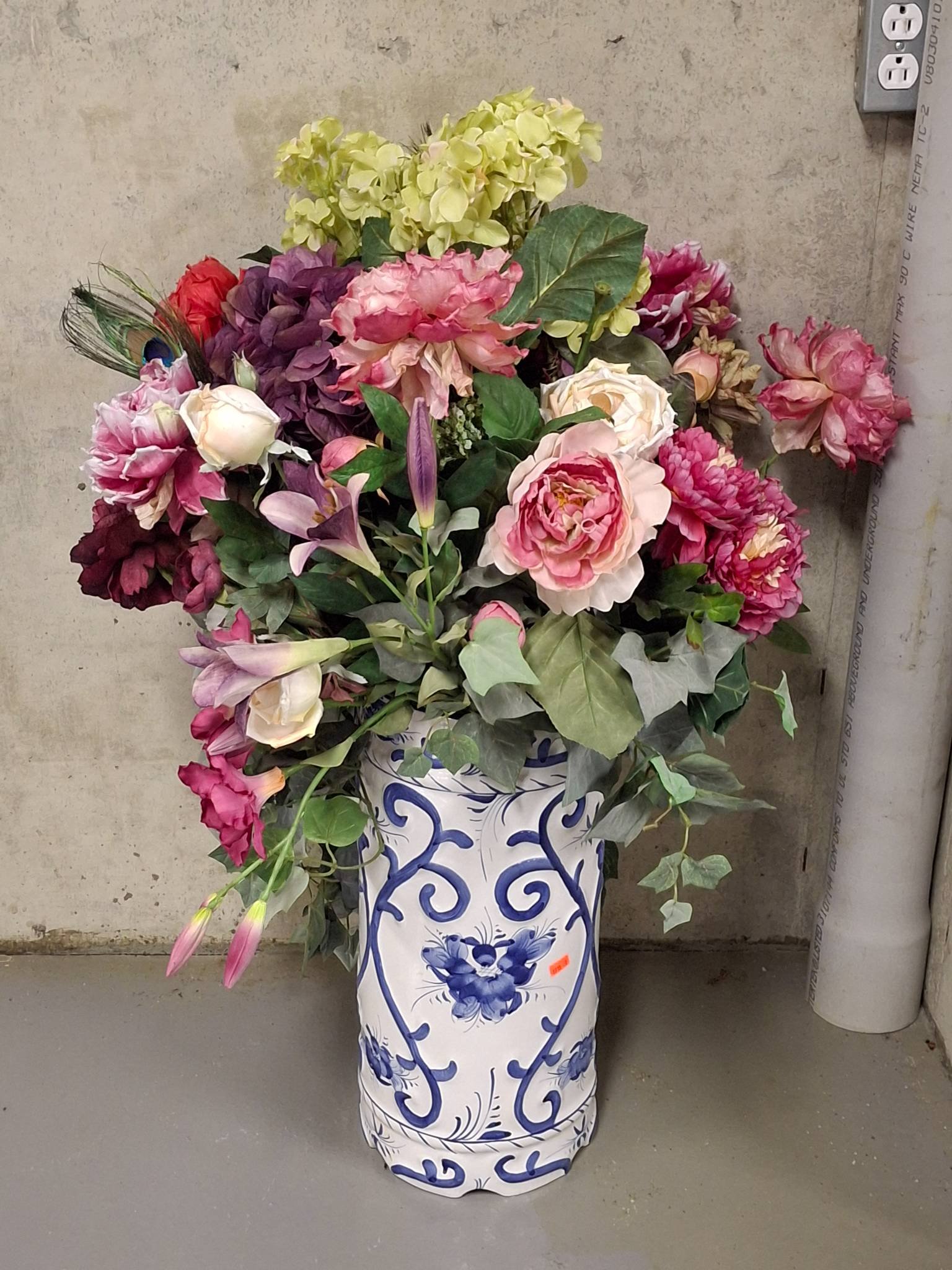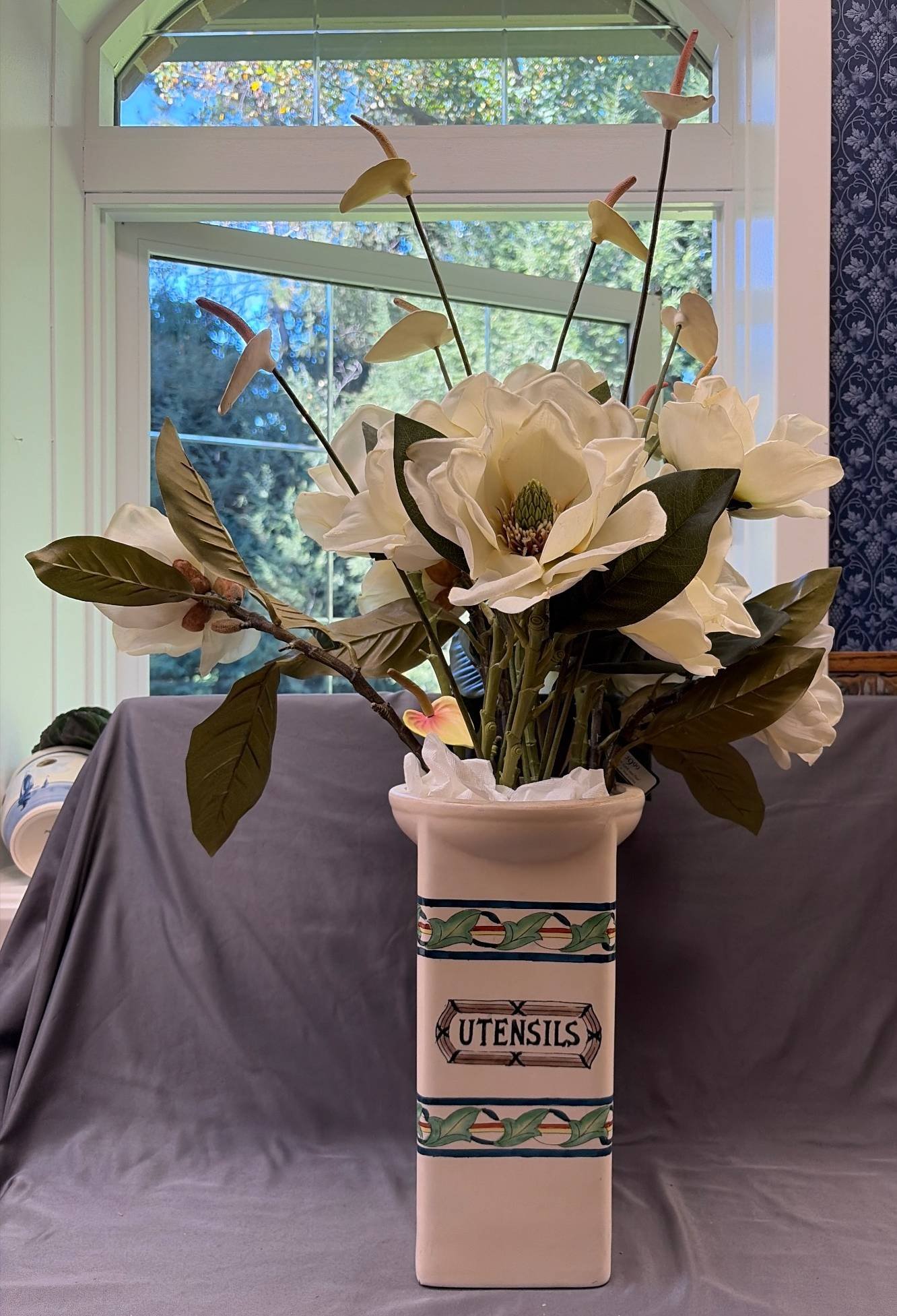 1419 Cylindrical Umbrella Holder with Floral Pattern 9?x18?