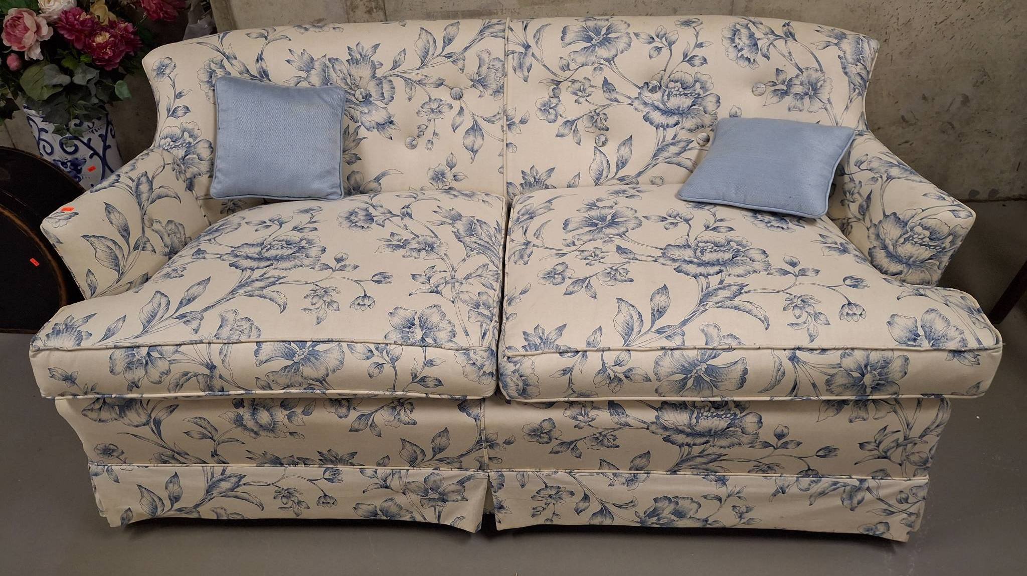 151 Floral Upholstered Sofa with Loose Cushions, 98”L x 38”W x 25”H