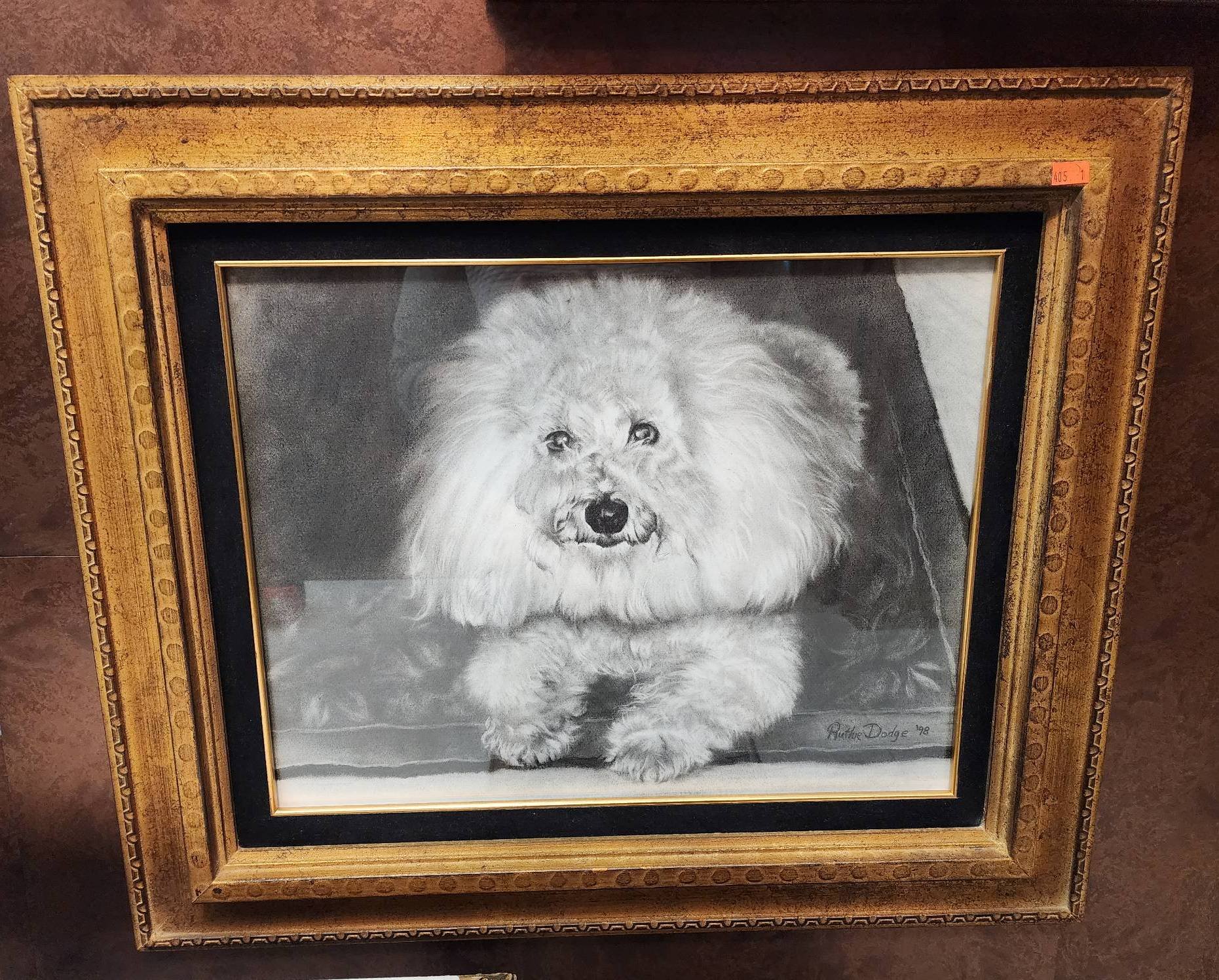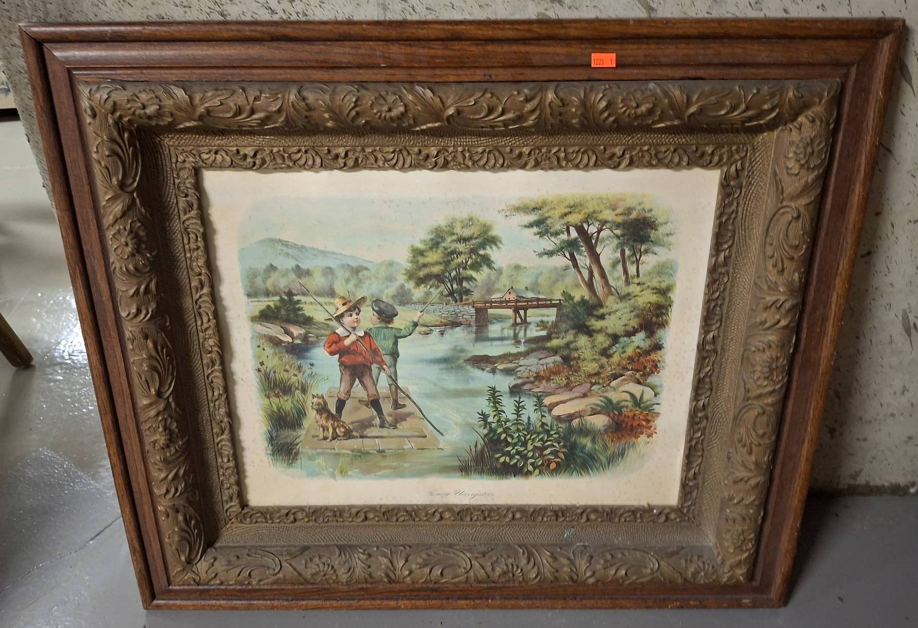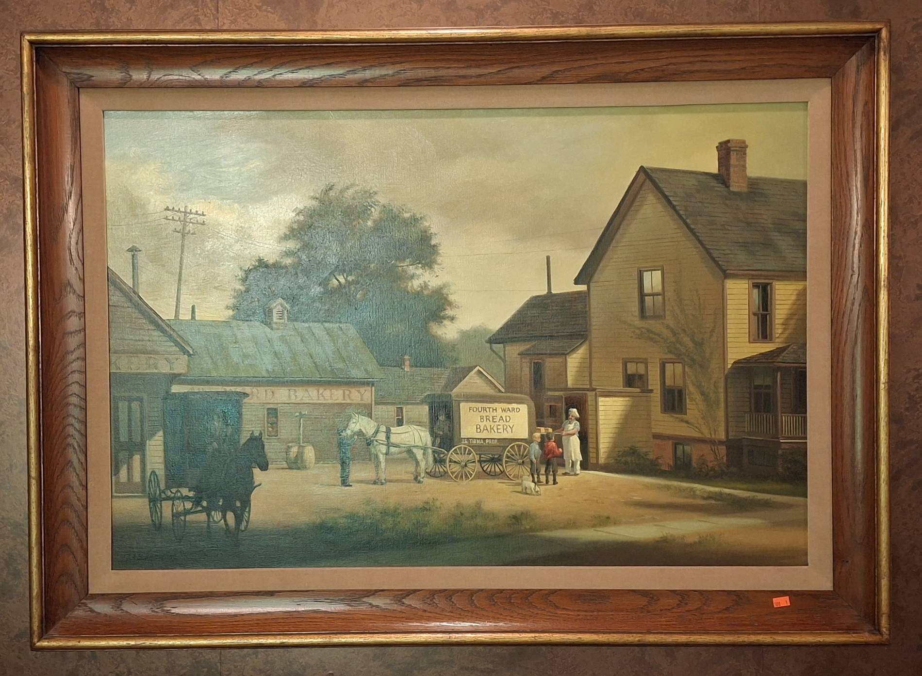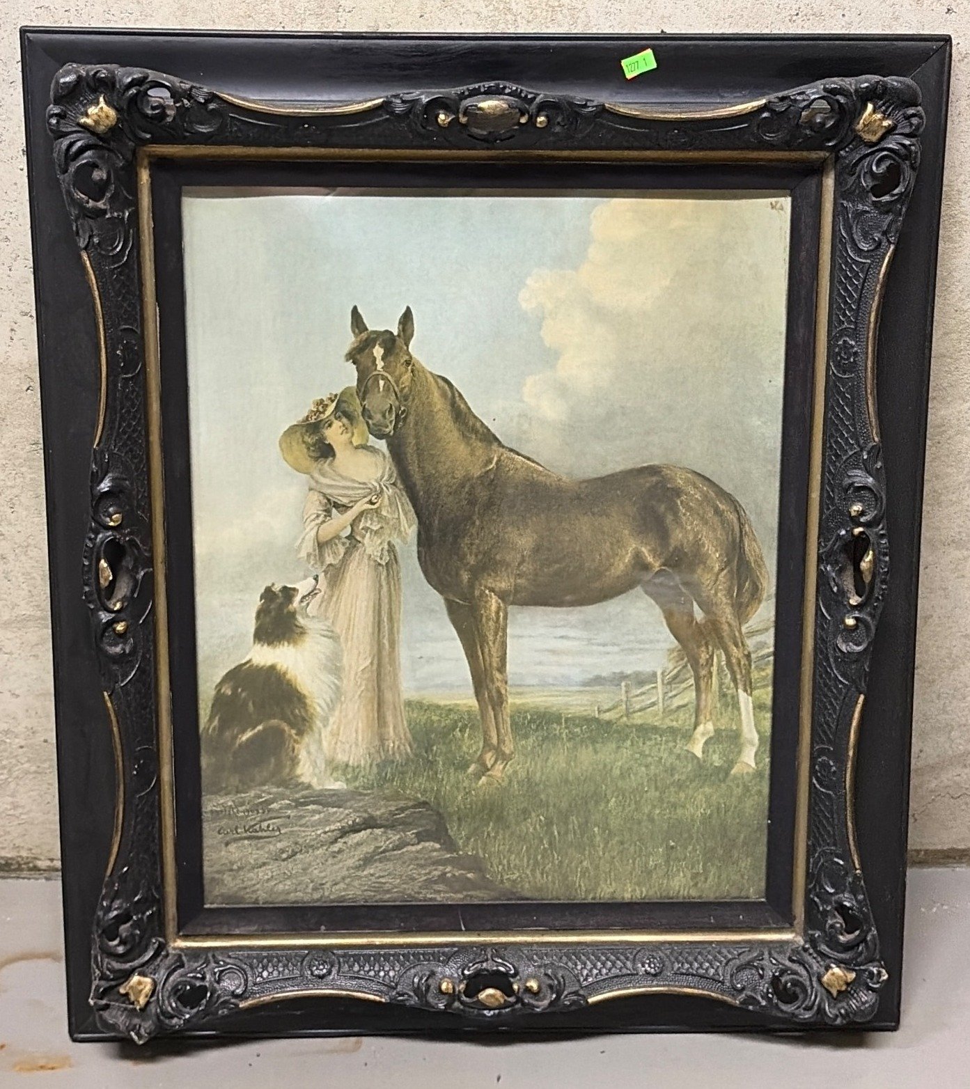 1277 Framed Print by Carl Kohler Featuring Woman, Horse, and Dog, 27”x23”