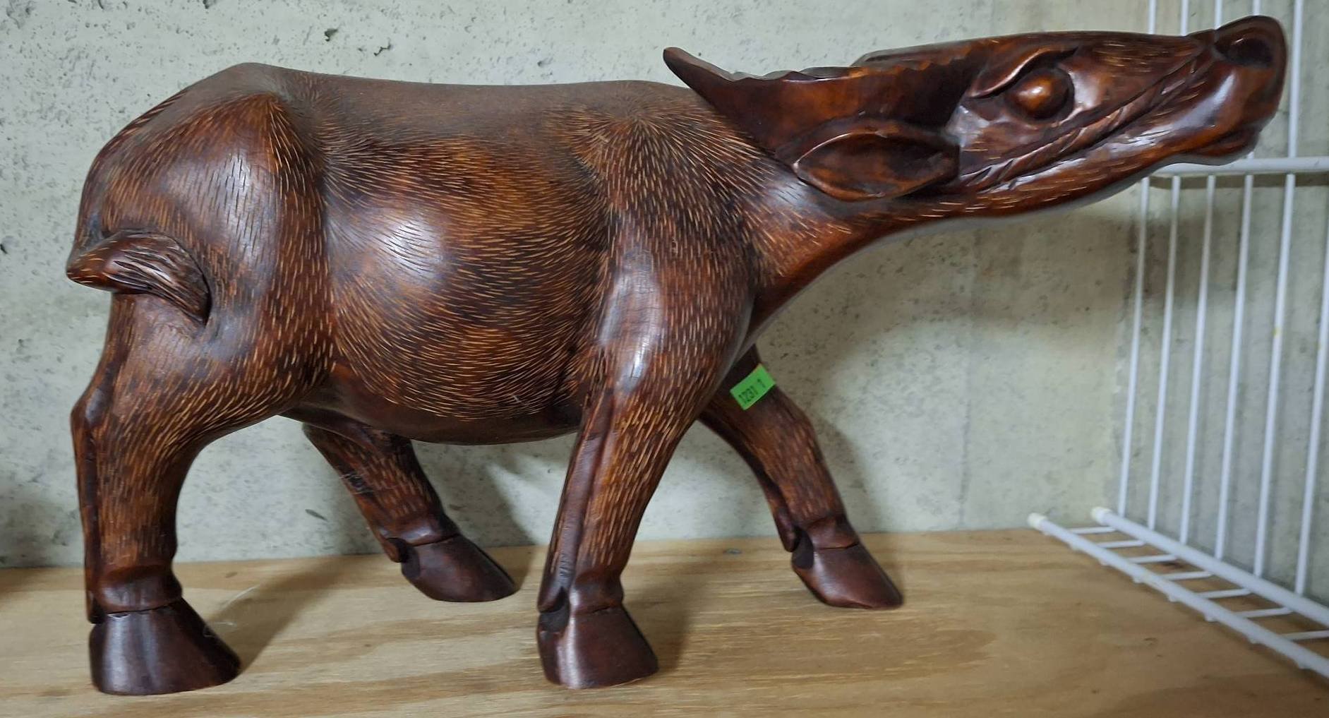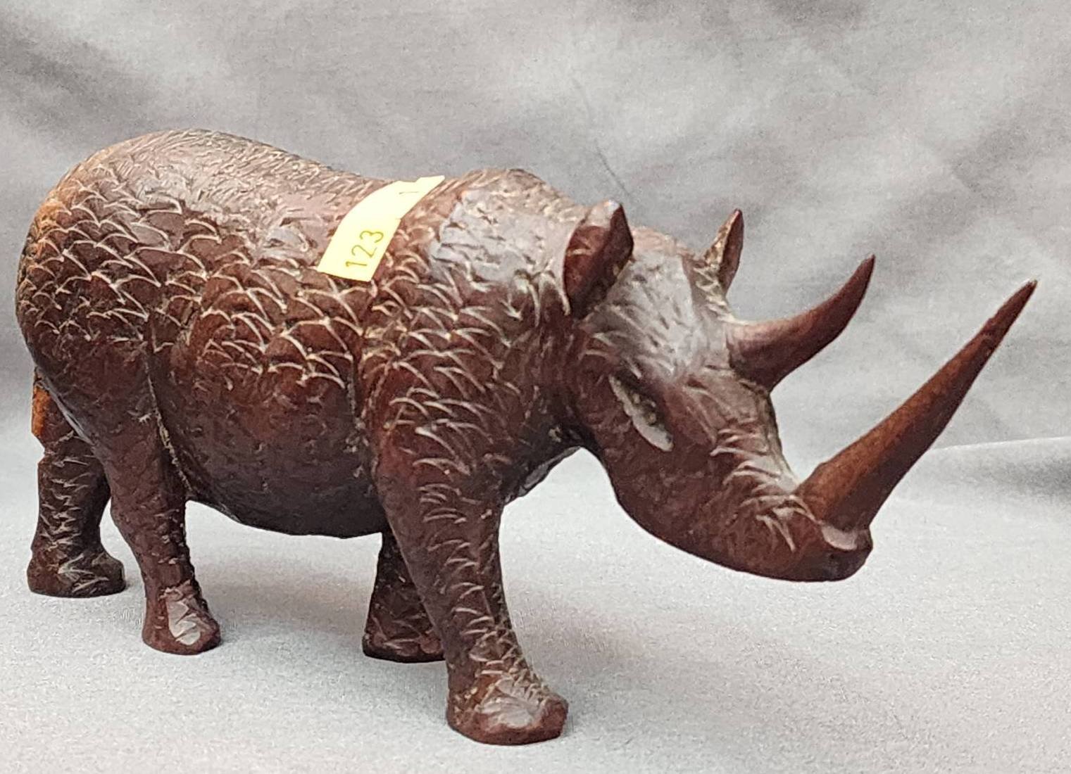 123 Hand-Carved Rhinoceros Figurine in Dark Wood, 7?x3?