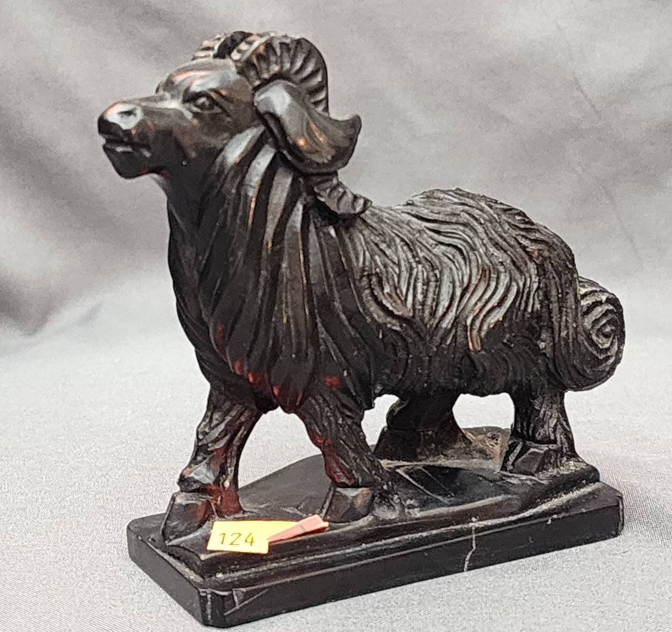 124 Carved Stone Figurine of a Ram on Rectangular Base, 3.5?x4?
