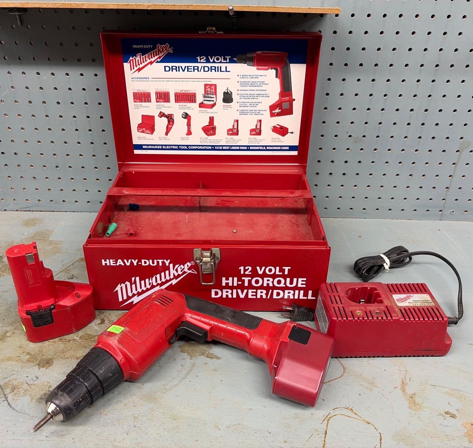 1274 Milwaukee 12V Hi-Torque Drill with Battery, Charger & Tool Box