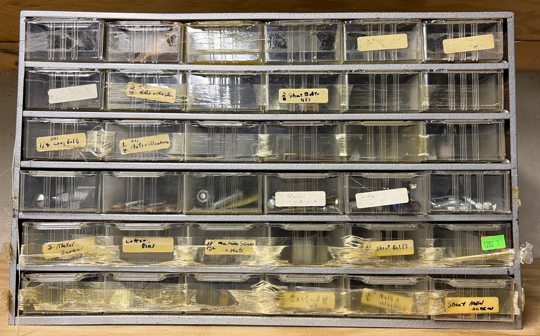 1281 Metal Organizer with Multiple Compartments Containing Hardware Fasteners 35x12x21?
