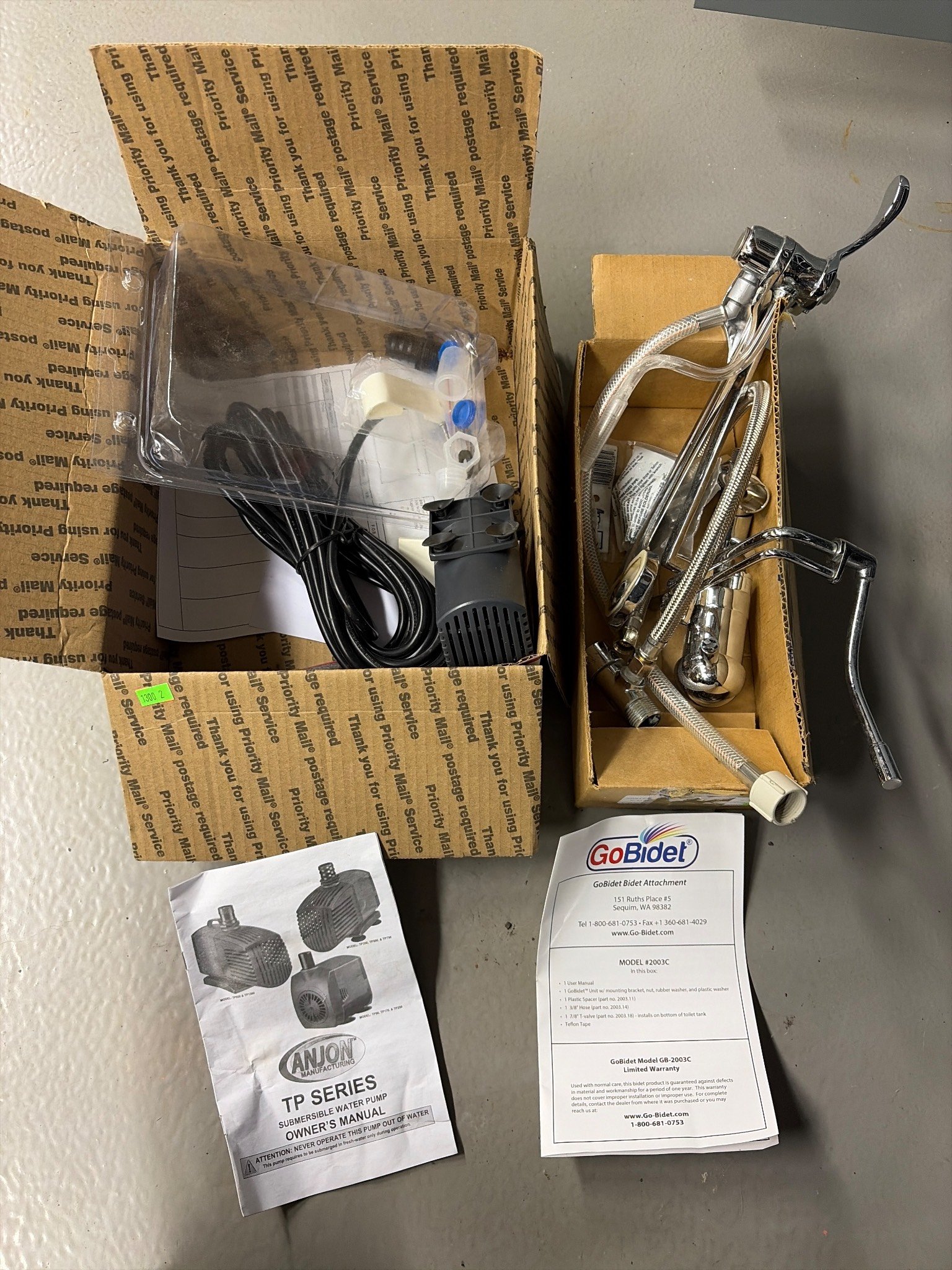 1300 GoBidet Model GB-2003C Bidet Attachment and Anjon Submersible Water Pump