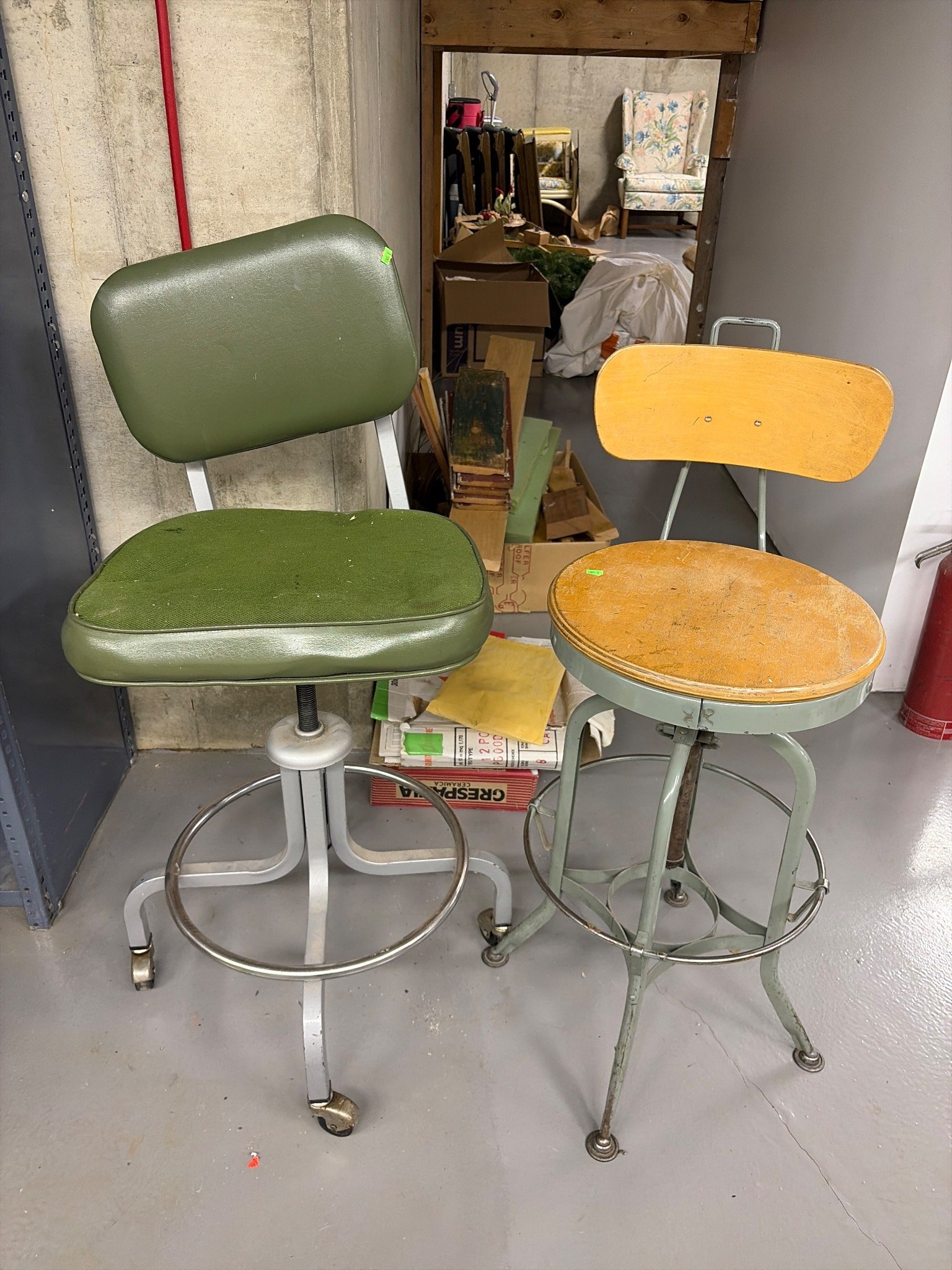 1305 2 Adjustable Industrial Chairs with Metal Bases and 28” Seat Heights