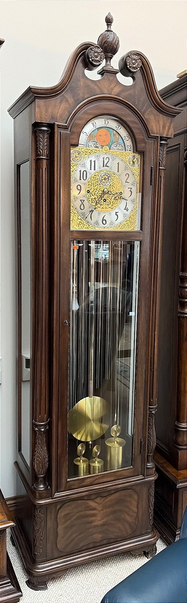 133 Herschede 9-Tube Grandfather Clock with Moon Phase Dial, 86”x16”x23”