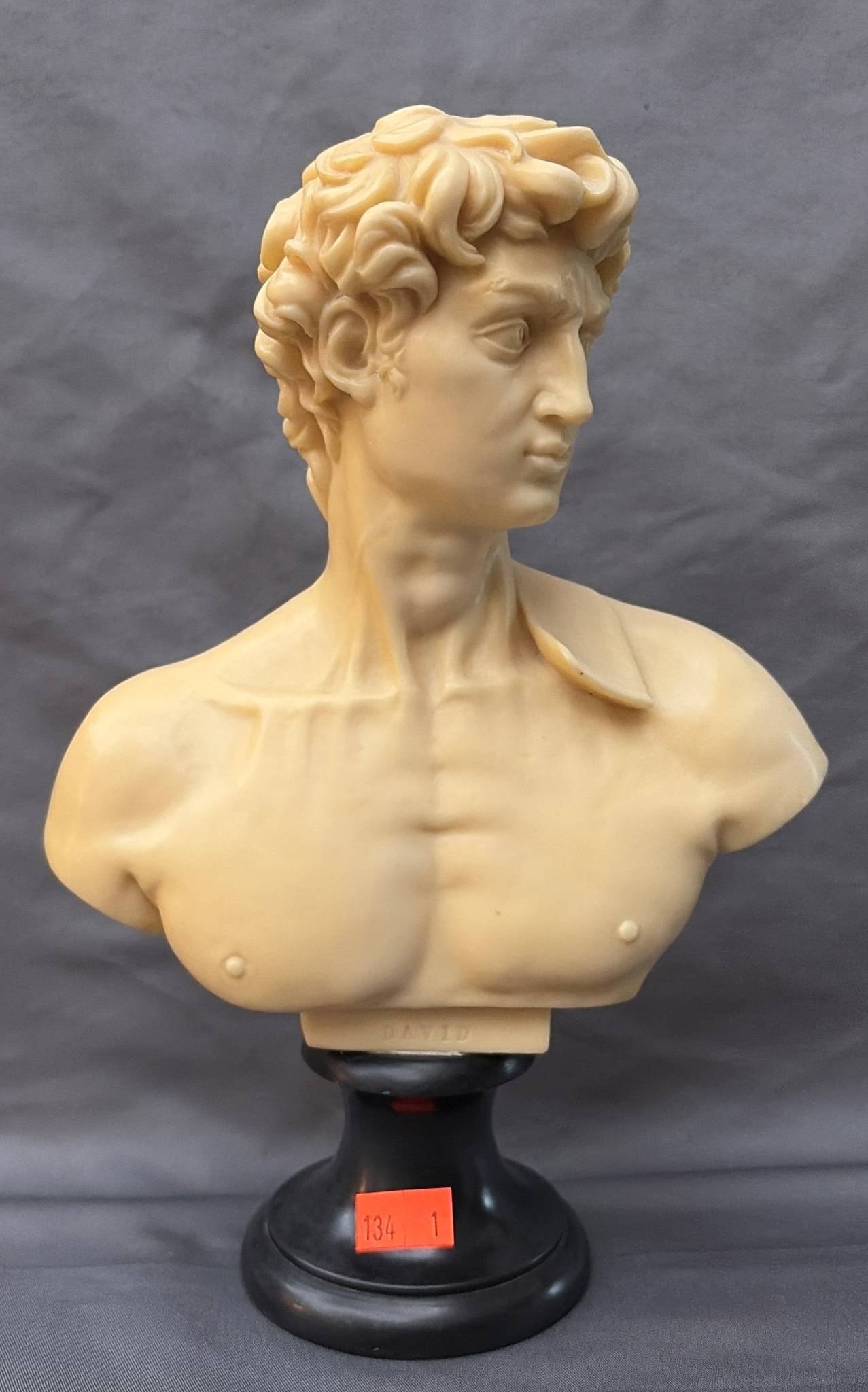 134 Italian-Carved Stone-Like ‘David’ Bust on a Black Base, 9.5”x6.5”
