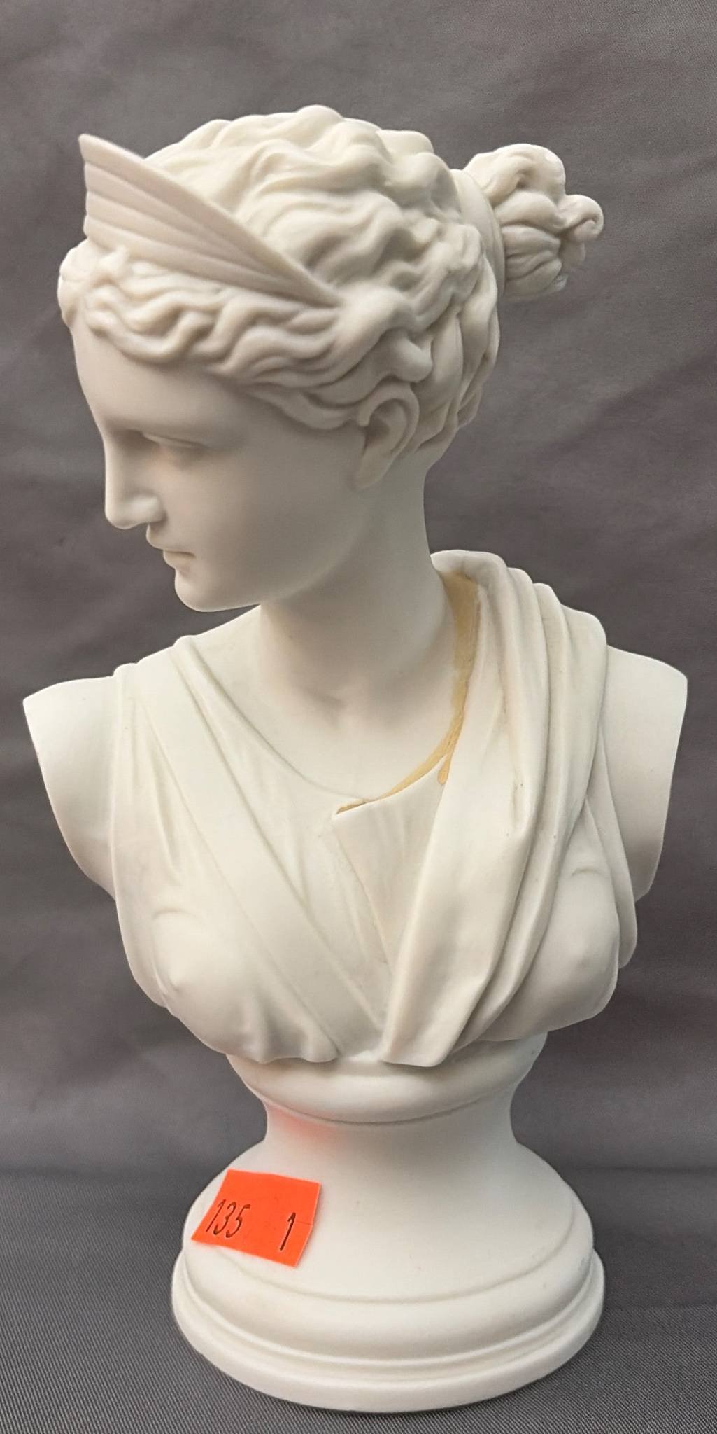 135 Porcelain Bust Sculpture with Cross Marking ‘3010’, Chips on Base, 7”x4”