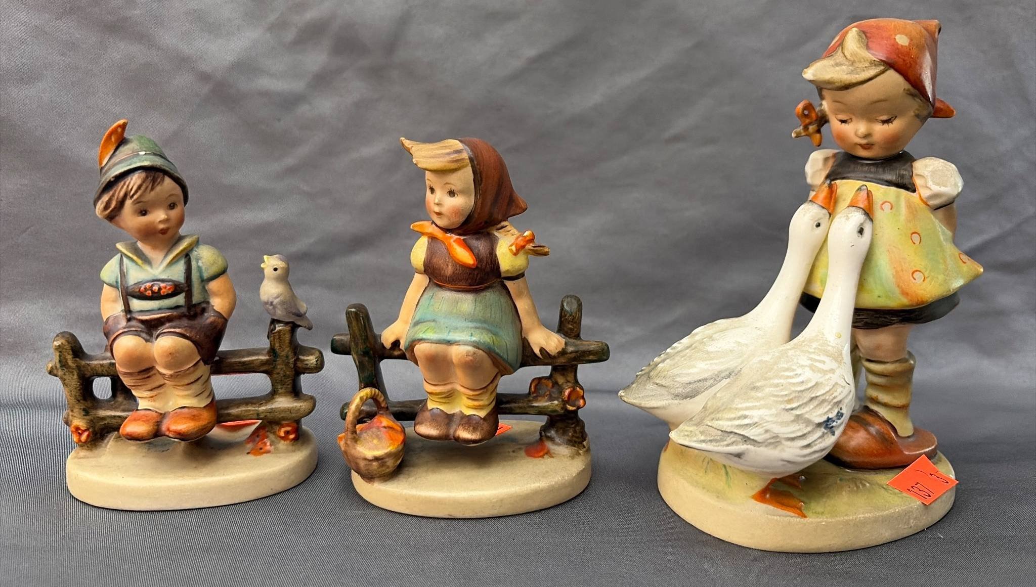 137 3 Goebel Figurines Featuring Children and Animals, 4”-5.5”H, Chips