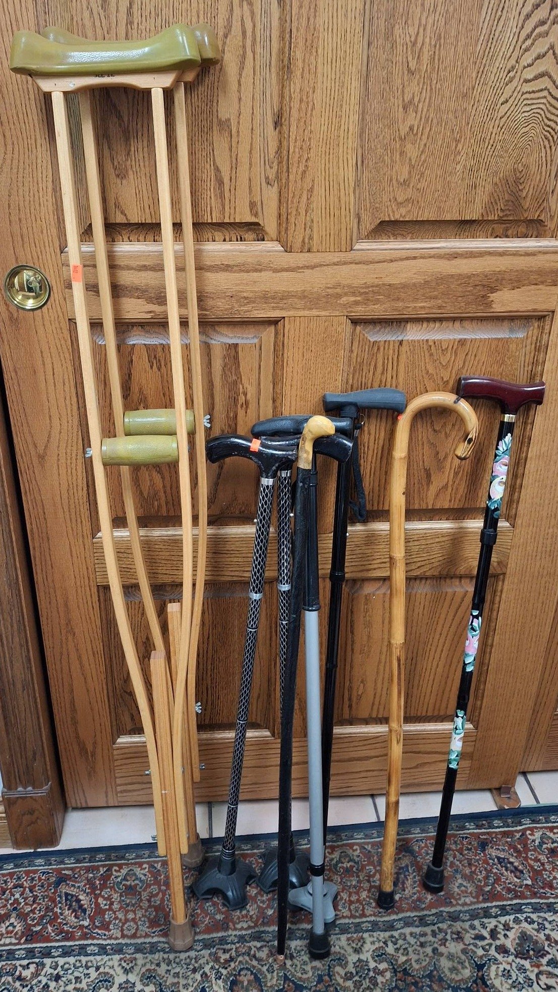 1402 Mobility Aids Inc. Pair of Crutches and 7 – Canes with Various Handles 36?-53?
