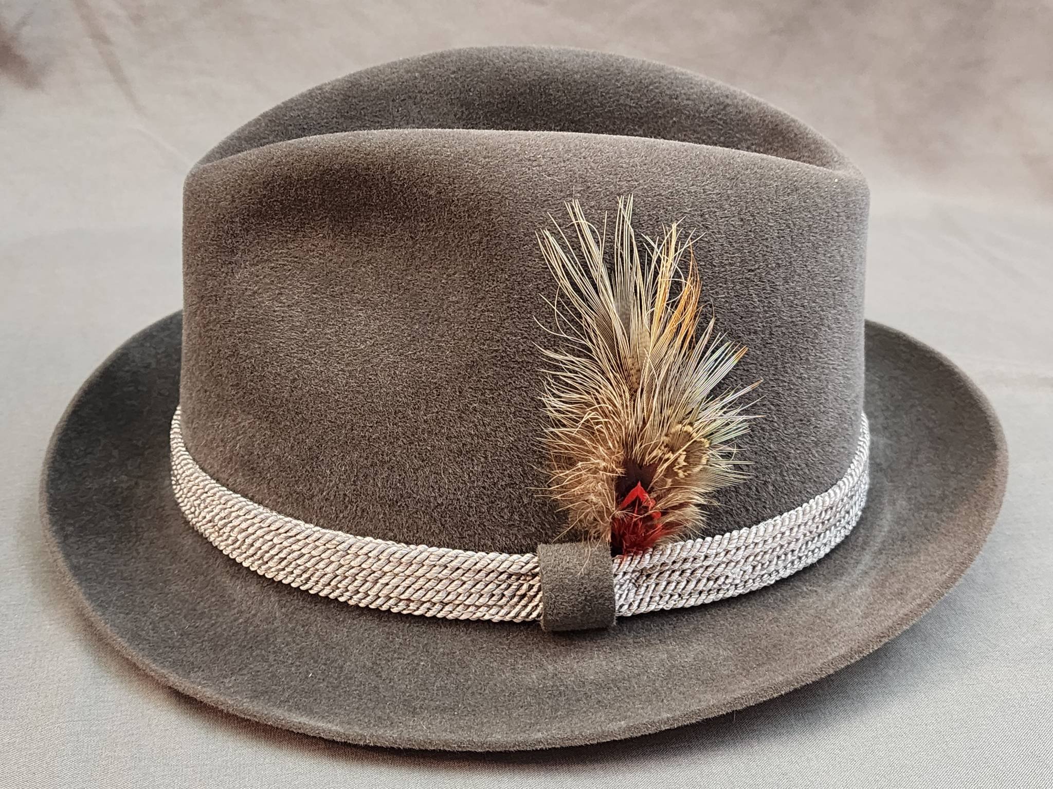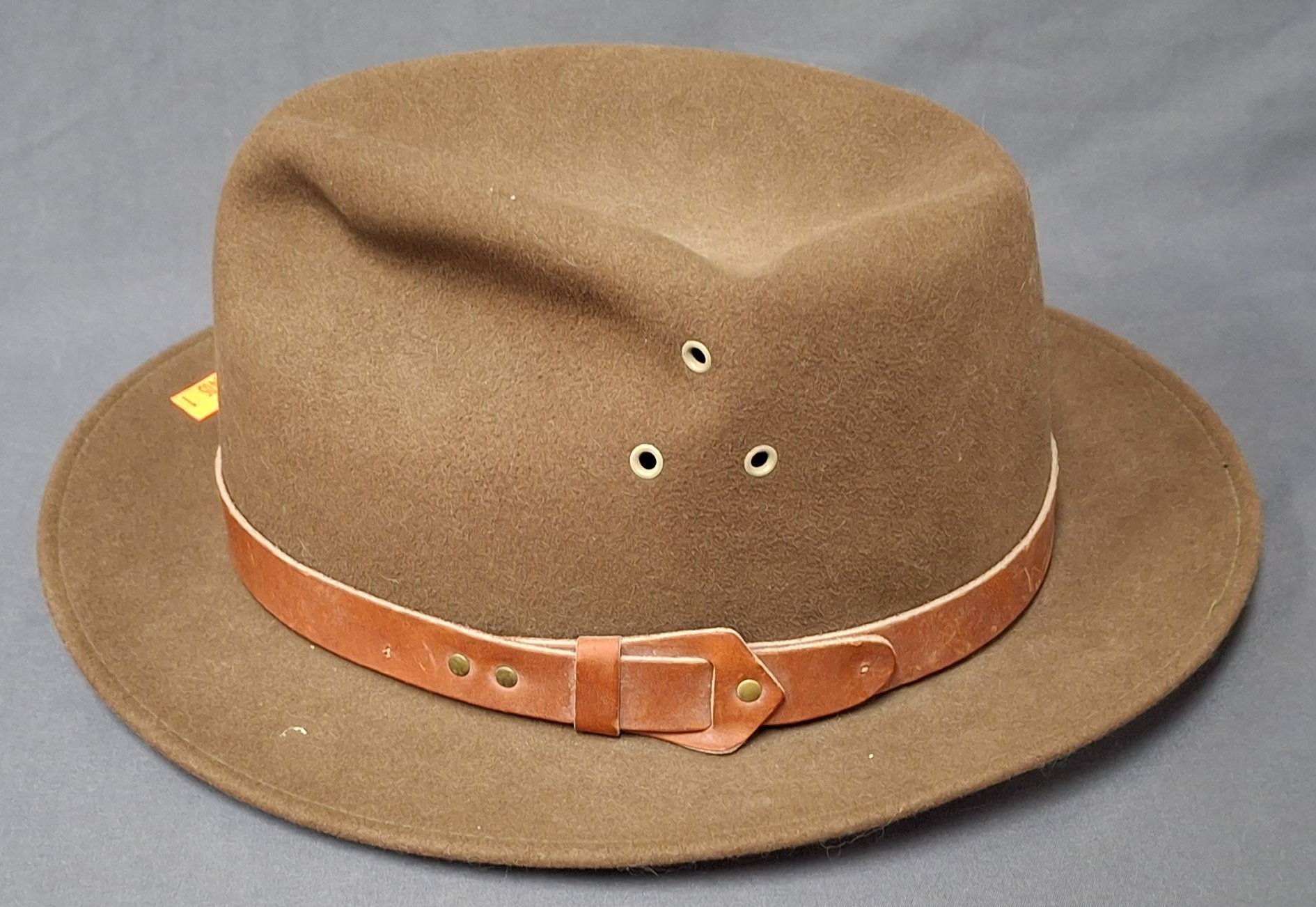 1405 Brown Felt Fedora Hat with Leather Band by Dynafelt Size: XL