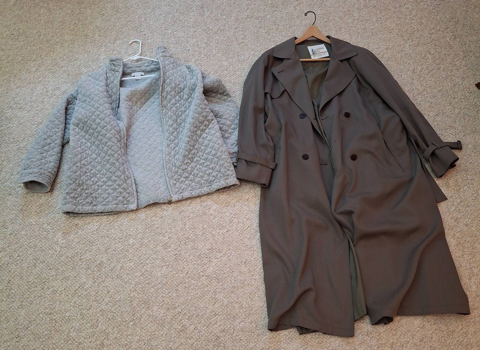 1408 Quilted Gray Jacket by Joan Vass and Brown Trench Coat by London Fog Size: 3 & 18 Reg.