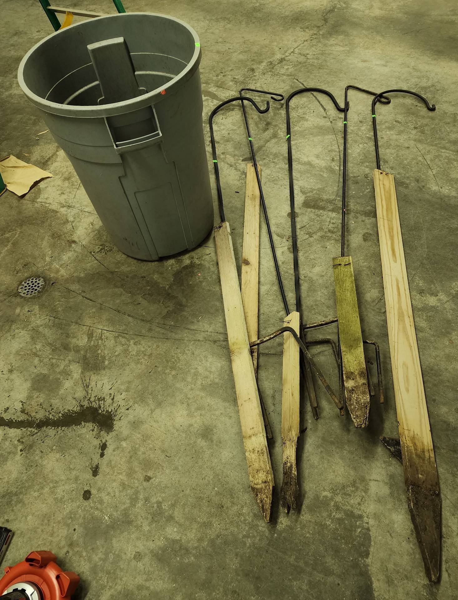 1528 Shepherd’s Hooks 85” and Plastic Trash Can