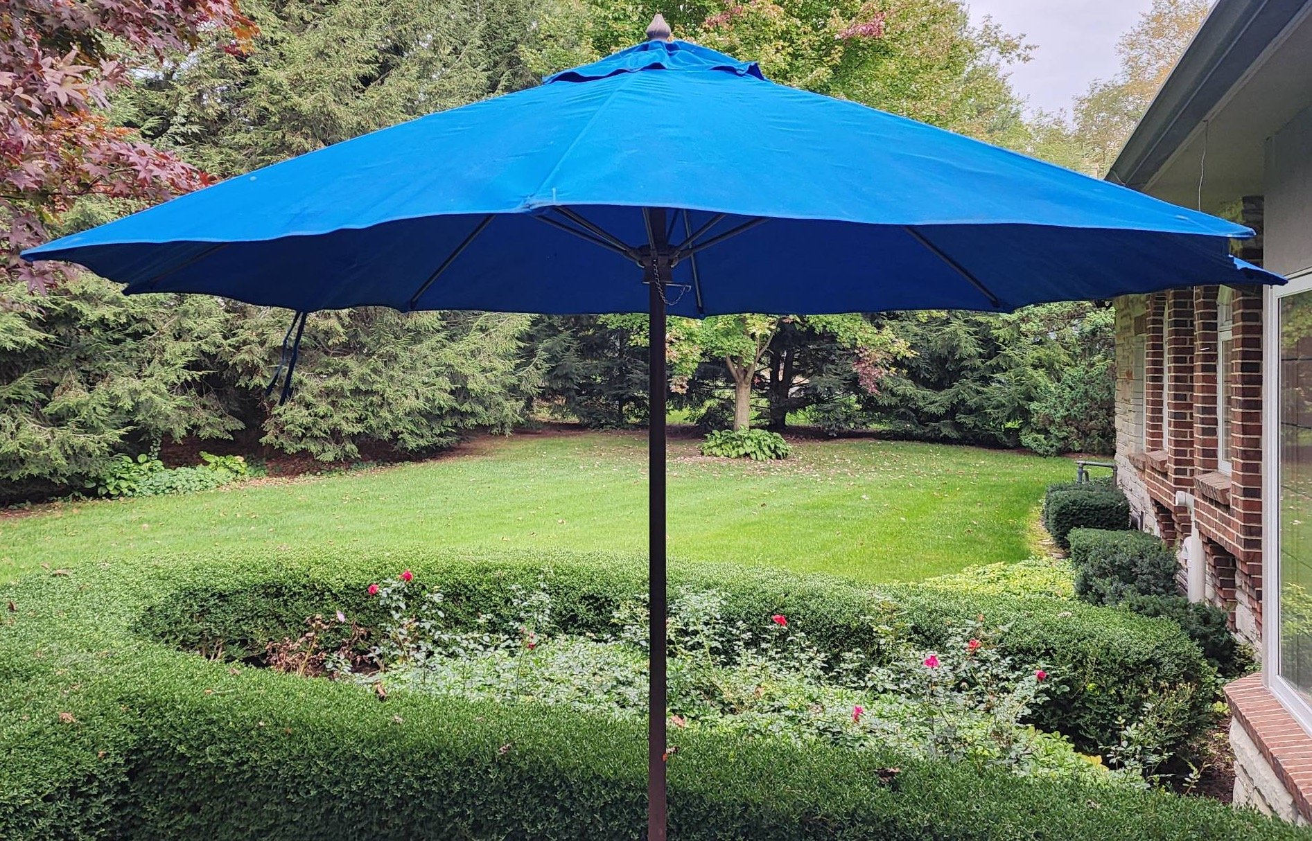 1603 Outdoor Umbrella with Blue Fabric and Weighted Base 103”