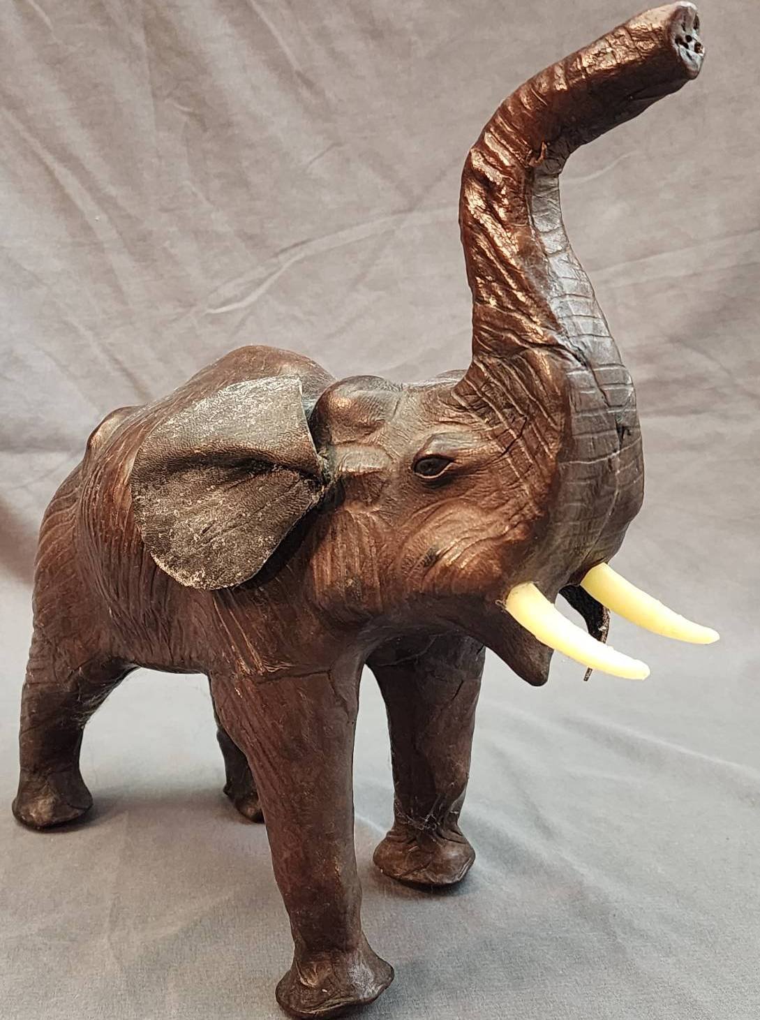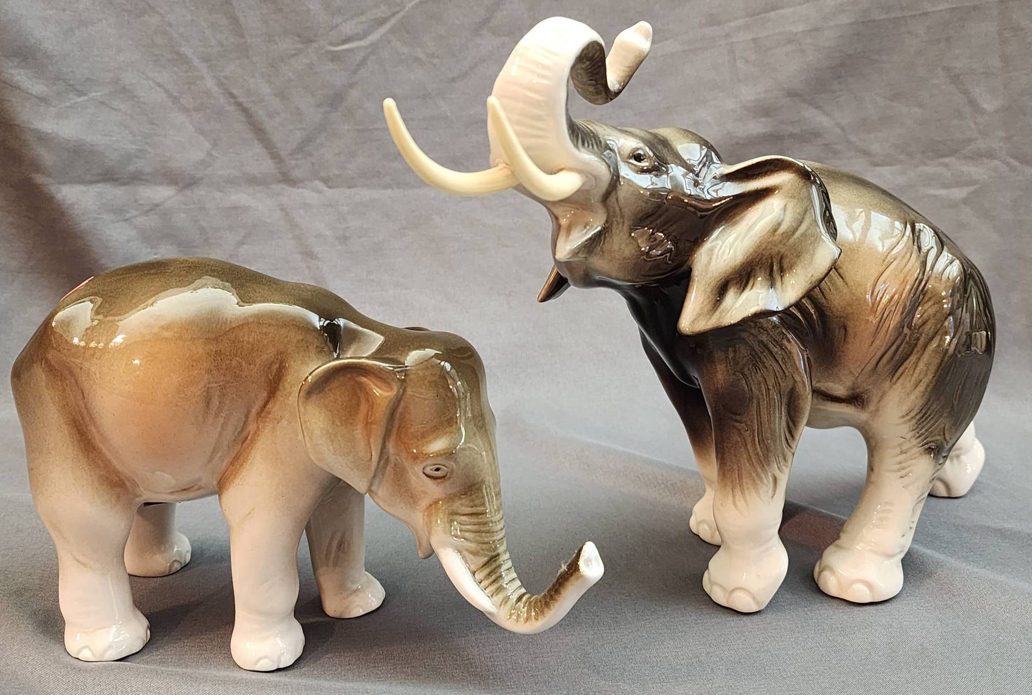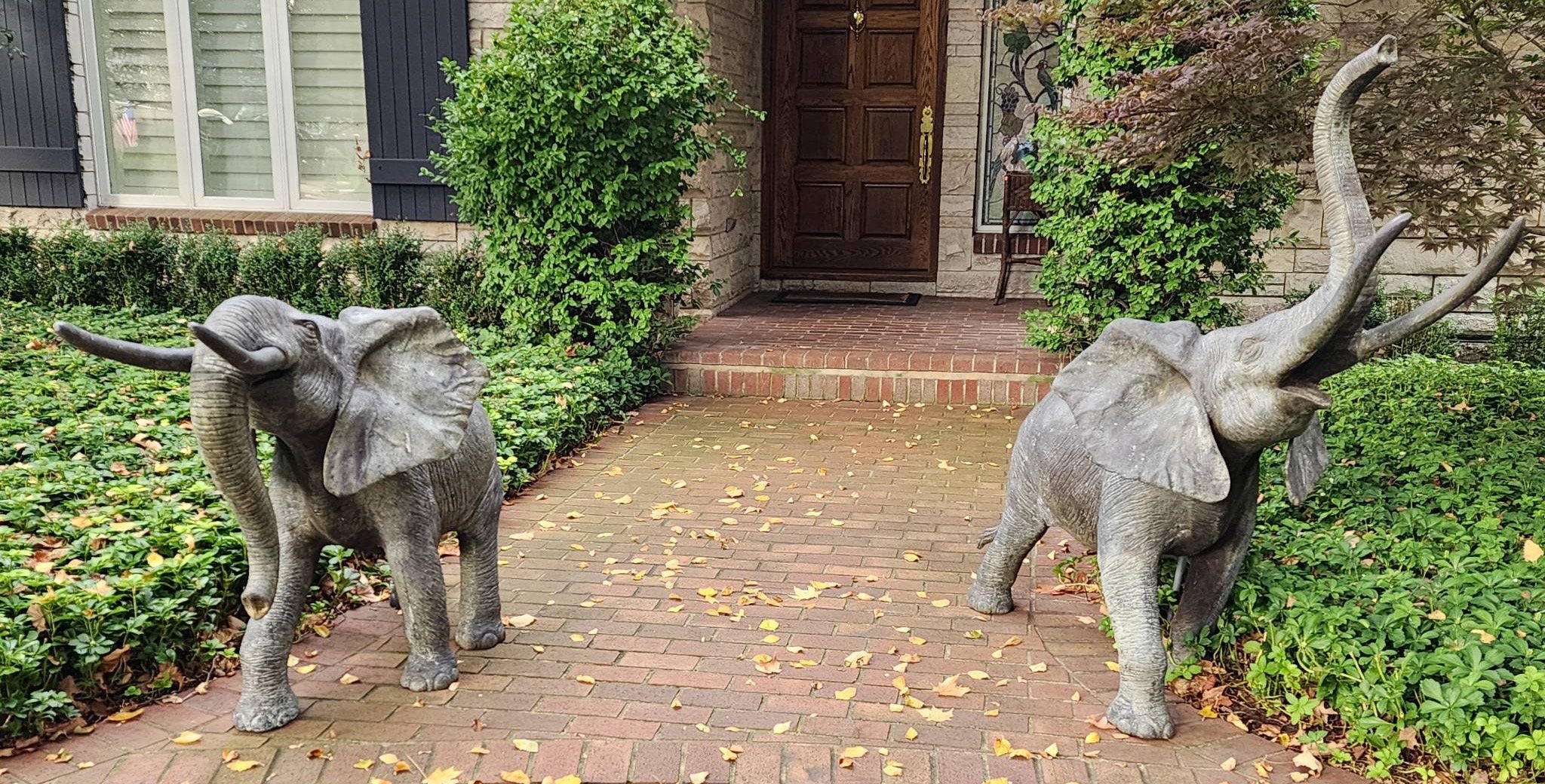 1604 2 Bronze Elephant Sculptures with Raised Trunks 70x27x39” & 70x27x59”
