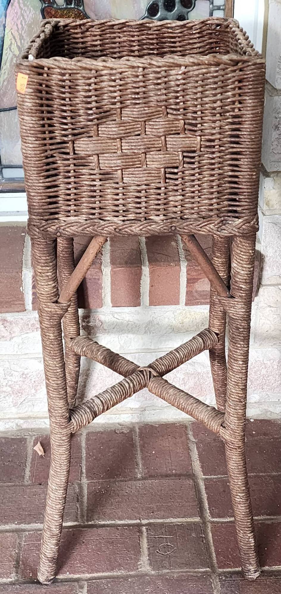 1605 Woven Wicker Plant Stand with Rectangular Basket 11x11x31”
