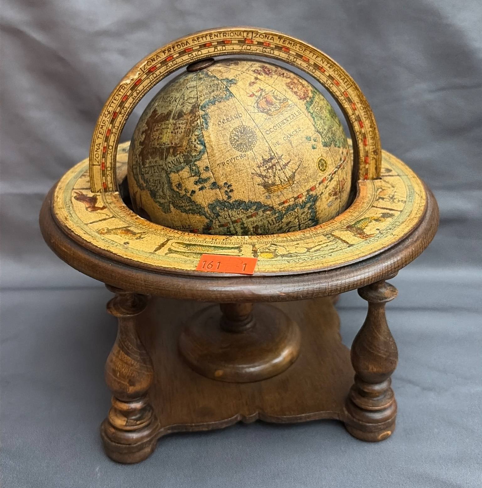 161 Italian-Made Wood Globe with Stand, 2pcs, 6”H