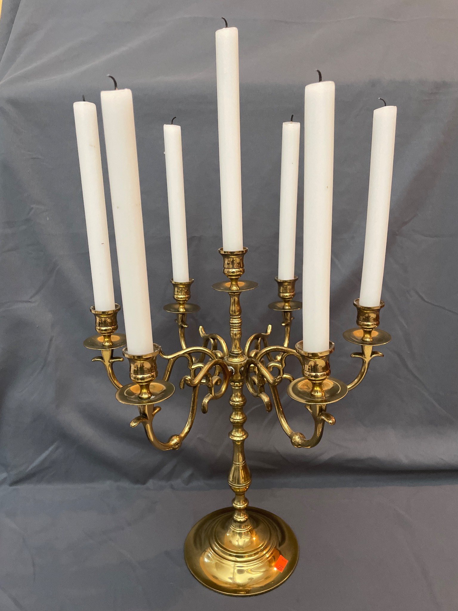 168 7-Light Brass Candelabrum with Curved Arms and Central Column