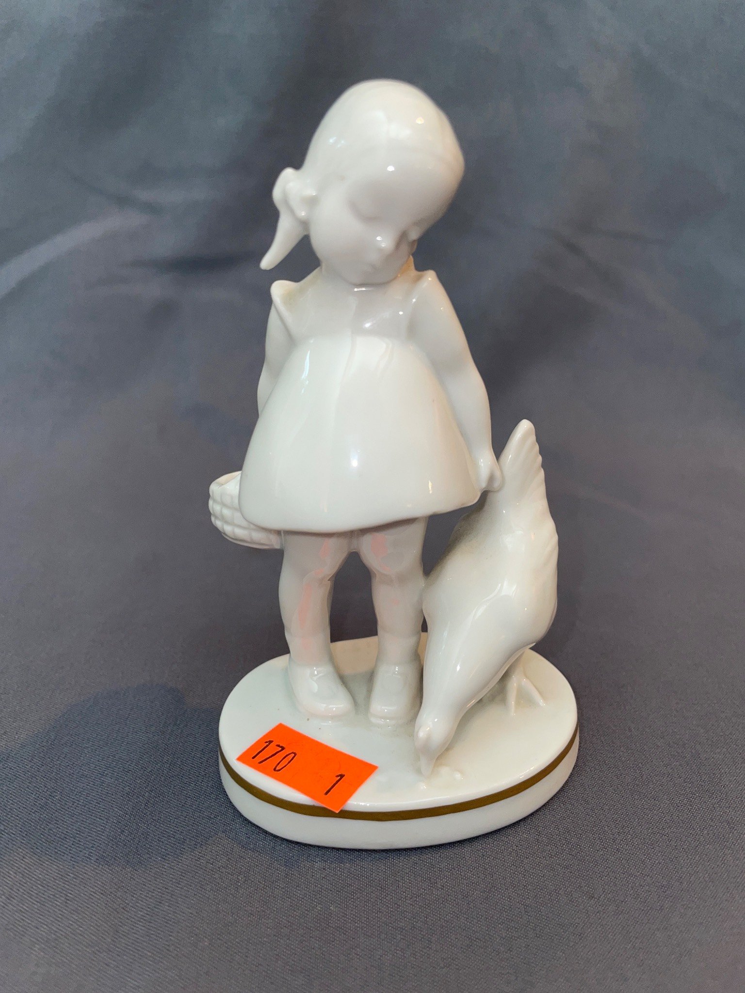 170 Porcelain Figurine of Girl with Basket and Chicken by Rosenthal Kunstabtellung Selb, 4.25”H