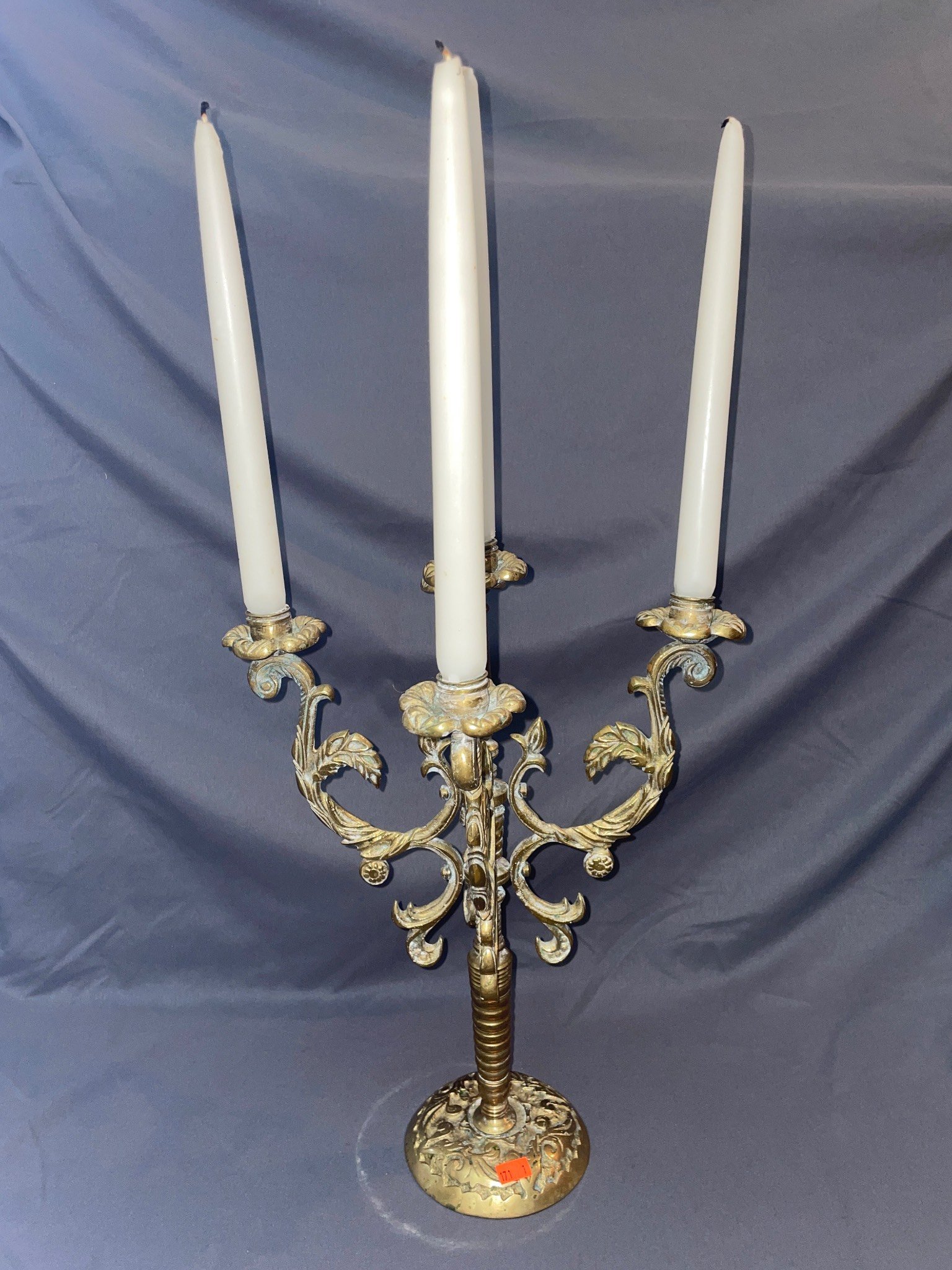 171 Brass 5-Arm Candelabra with Ornate Scrollwork Design, 17? T