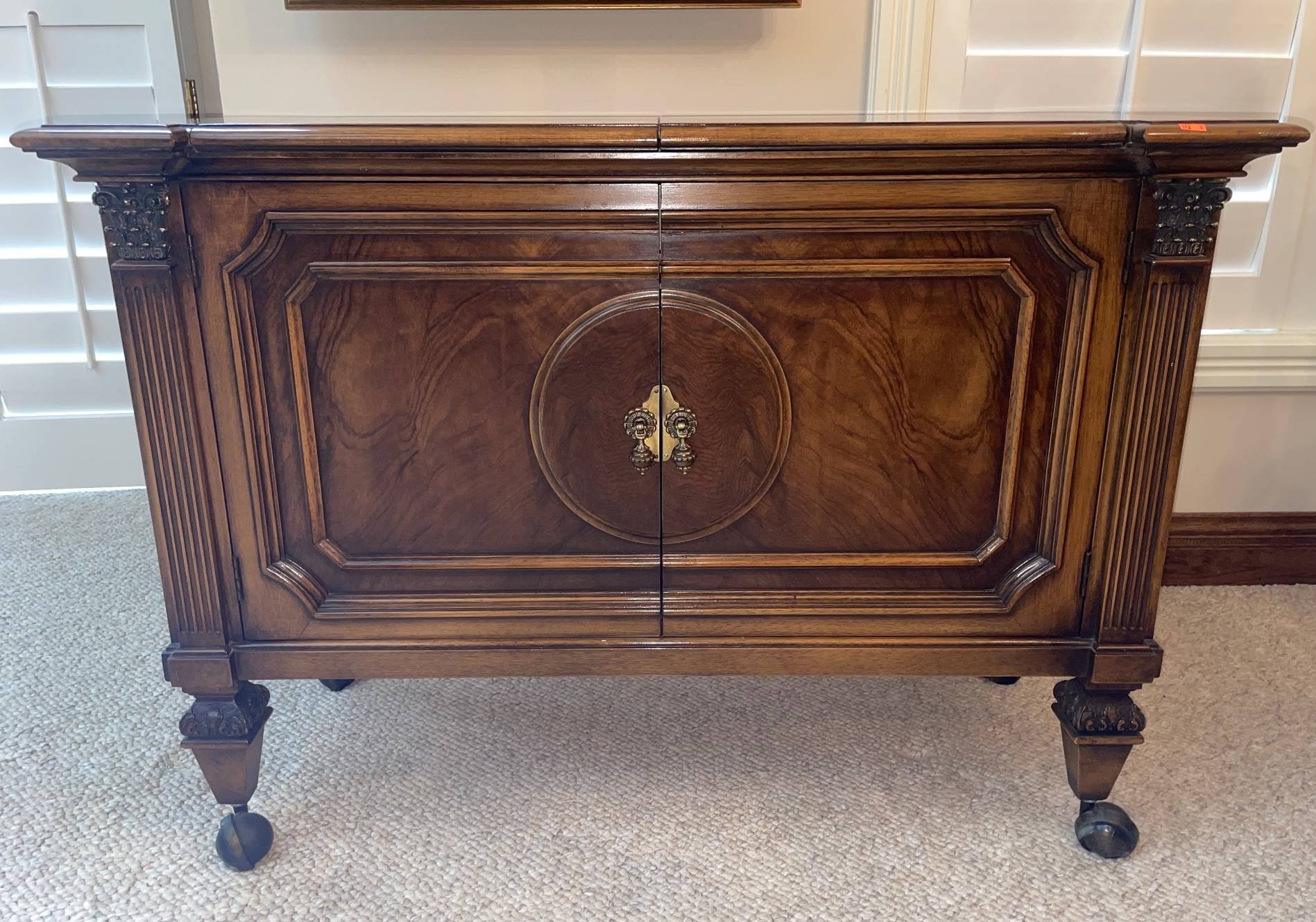172 Romweber Flip-Top Bar Cabinet on Casters with Storage, Contents NOT Included, 41”Lx20.25”Wx29”H