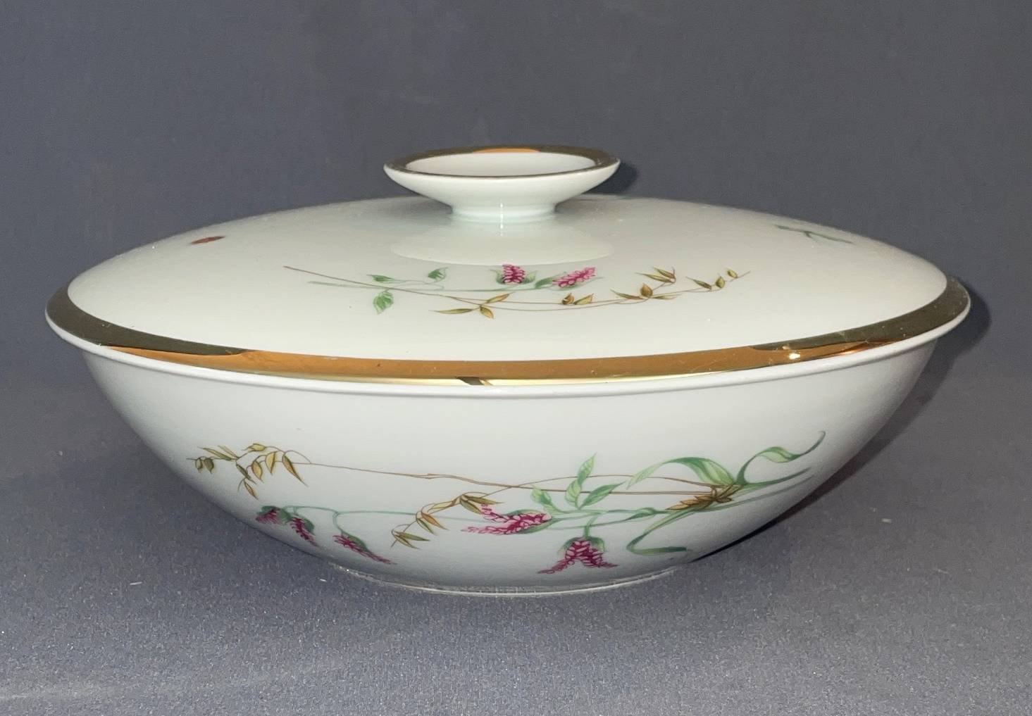 177 Rhenania Duisdorf Porcelain Covered Dish with Floral Pattern, 7?D x 2? H