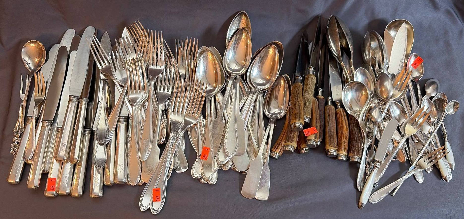 178 Silverplated Flatware Assortment & Stag Handled Knivves inc. ‘WMF 90’, ‘OKA 100’ & German Antler Handle Knives