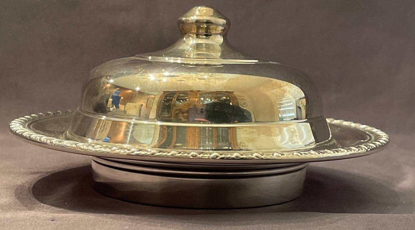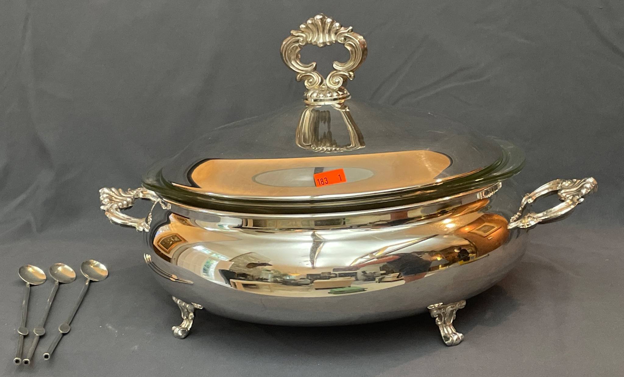 183 FB Rogers Silver Co. Silver-Plated Tureen with Pyrex Glass Insert and Stamped Spoons