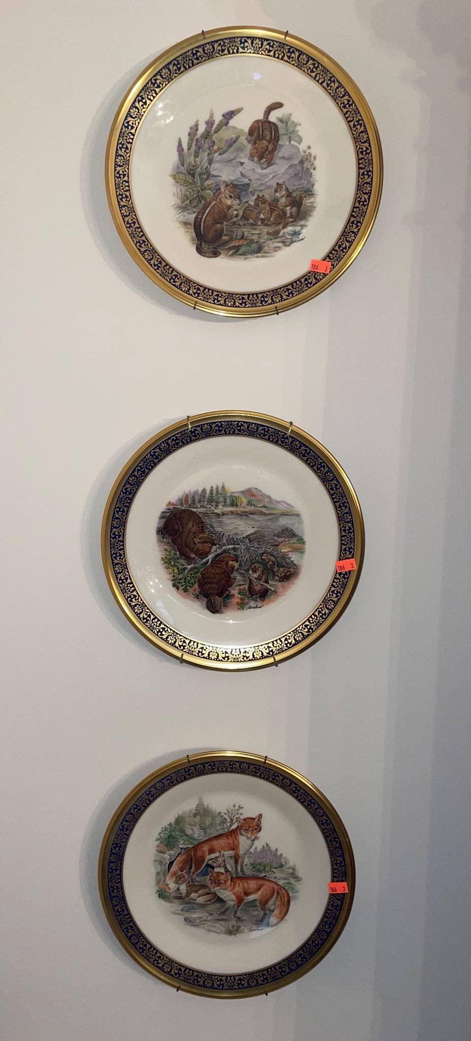 186 Lenox Woodland Wildlife Limited Edition Collector Plates (3), Boehm Design, 10.5?
