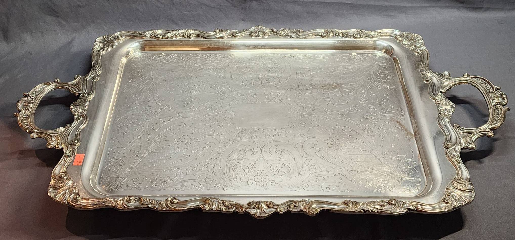 184 Oneida USA Silver-Plated Serving Tray with Handles, 18.25?