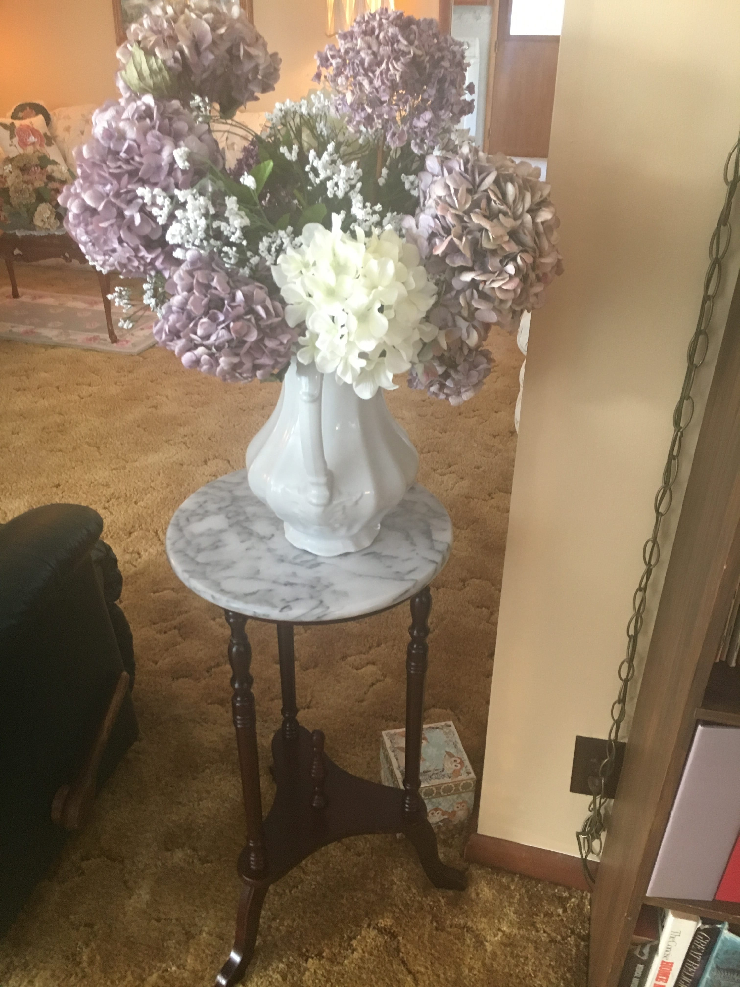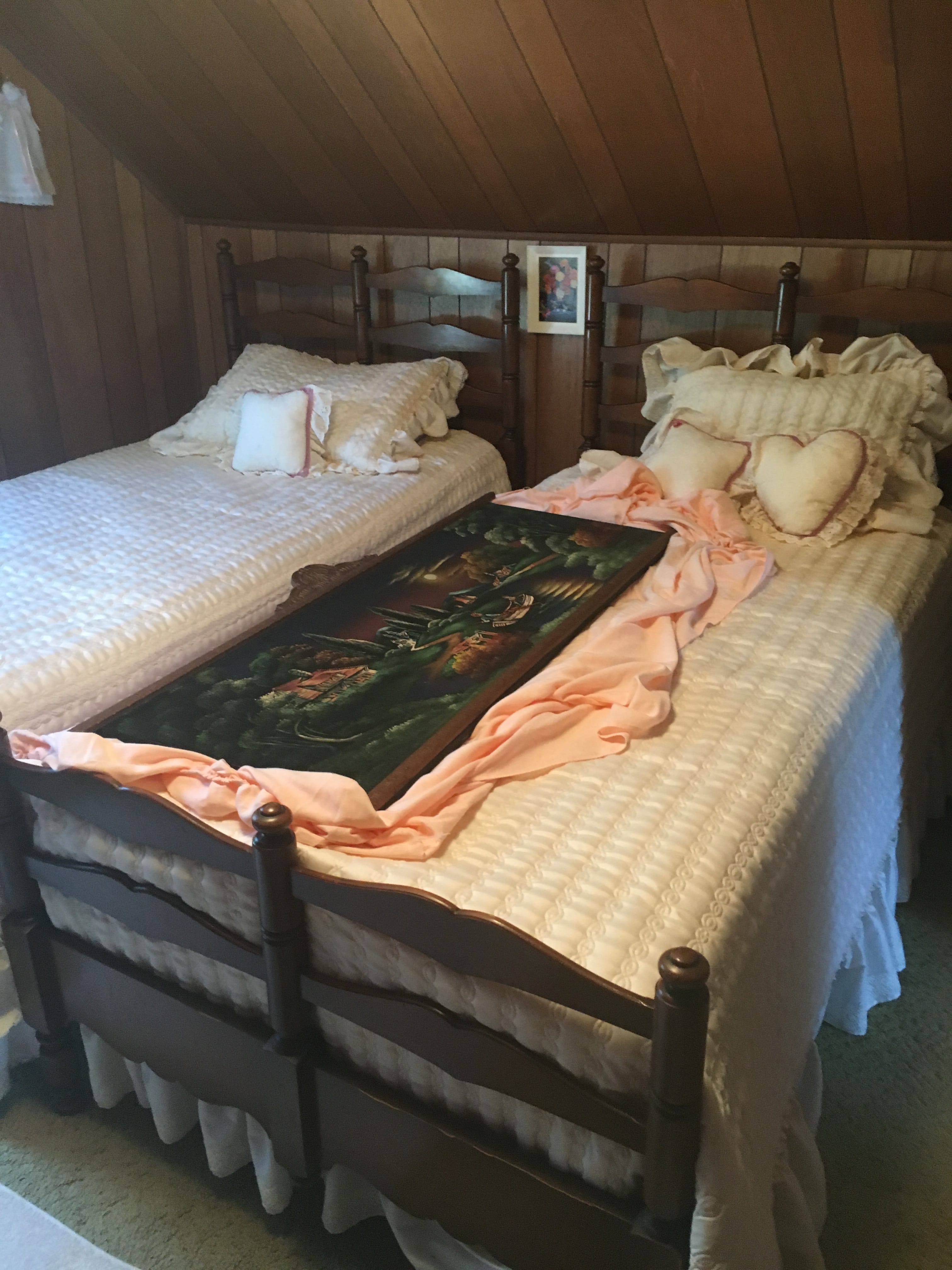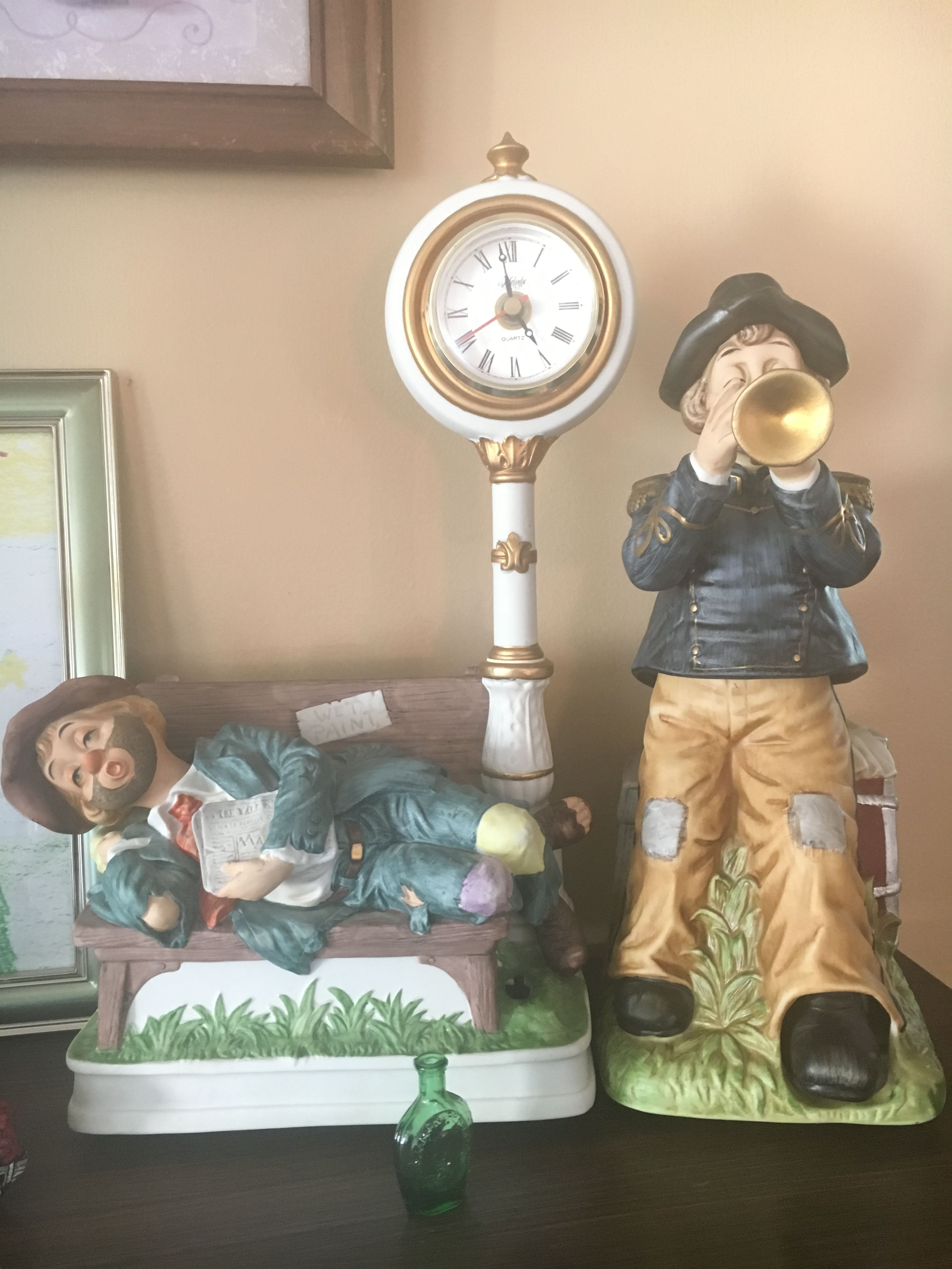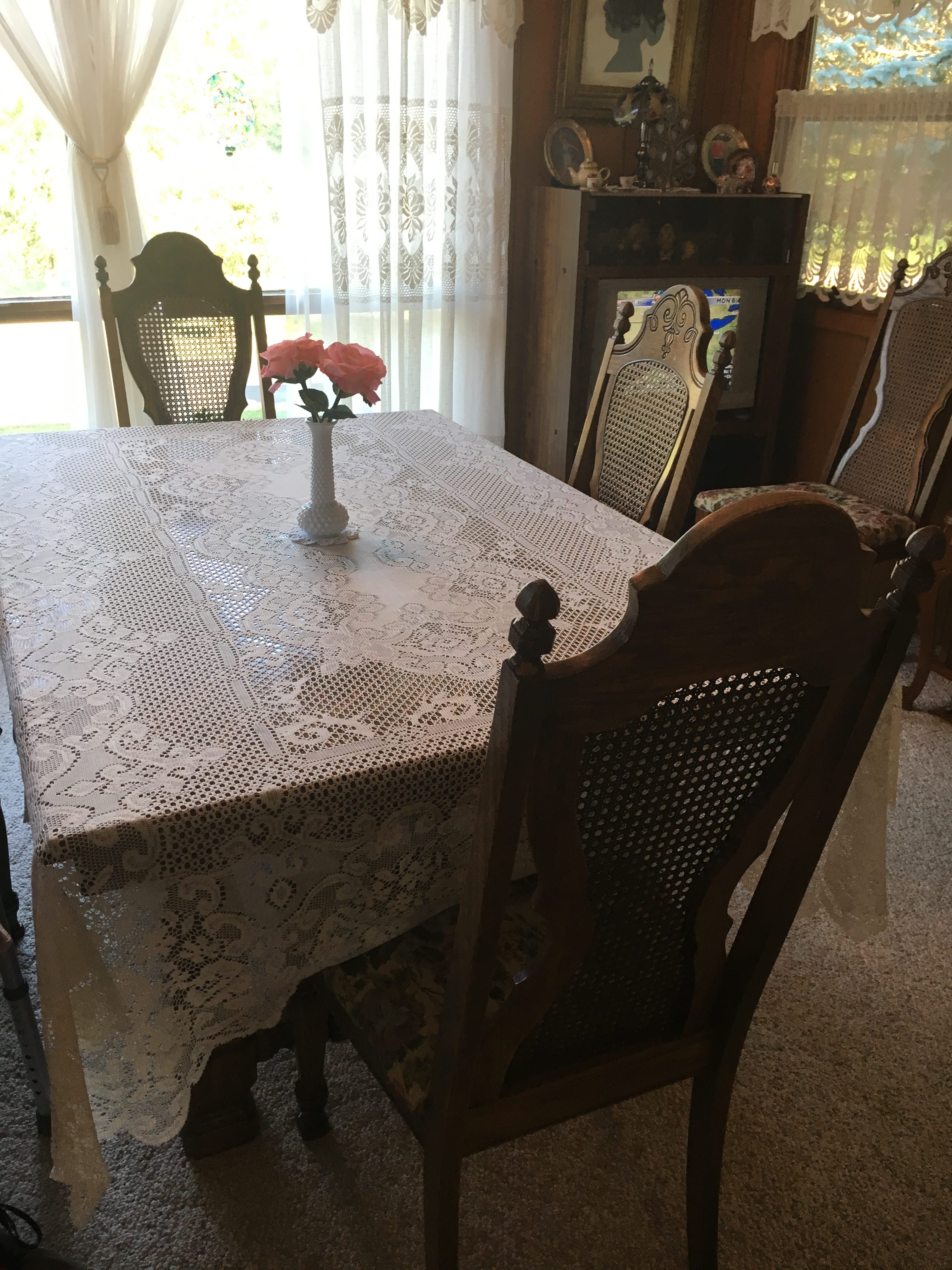 Sofa; Leather Recliner; Wicker Patio Set; Grandfather Clock; 3 pc. Bedroom Suite; Queen Size Bed; Armoire; 2 Twin Beds; Childs Rocker; Midcentury Desk; Office Chair; Filing Cabinet; Kimball Organ – Fascination the Entertainer; Hymnals; Pots, Pans, Dishes, Bakeware, Sm. Appliances; Pictures, Prints & Oil Paintings; Tapestry; Floral Arrangements; Mirrors; Longaberger Baskets; Console Radio; Sony Stereo System; Exercise Equip.; Puzzles & Games;