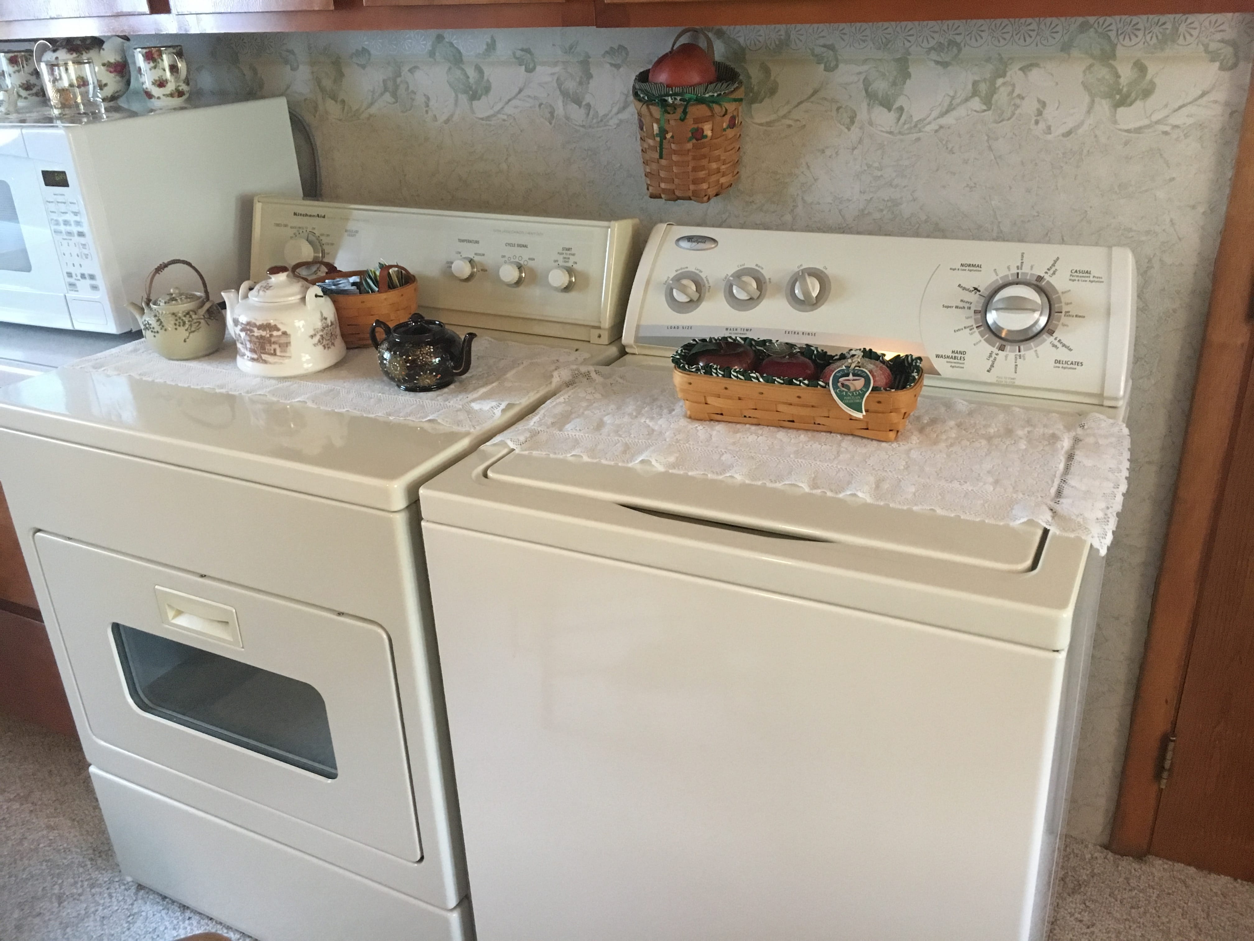 Whirlpool Smooth Top Stove; Whirlpool Refrigerator; Whirlpool Washer; KitchenAid Elec. Dryer;