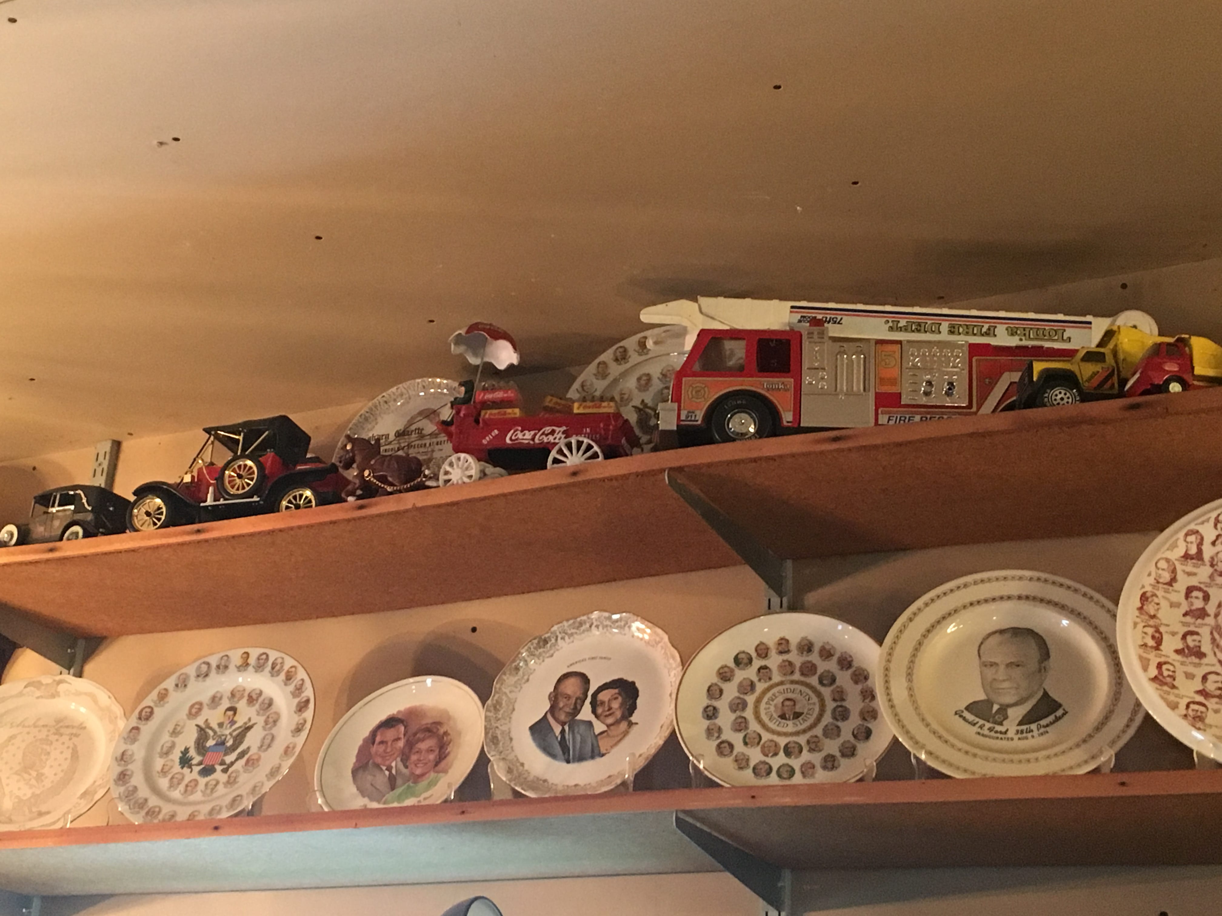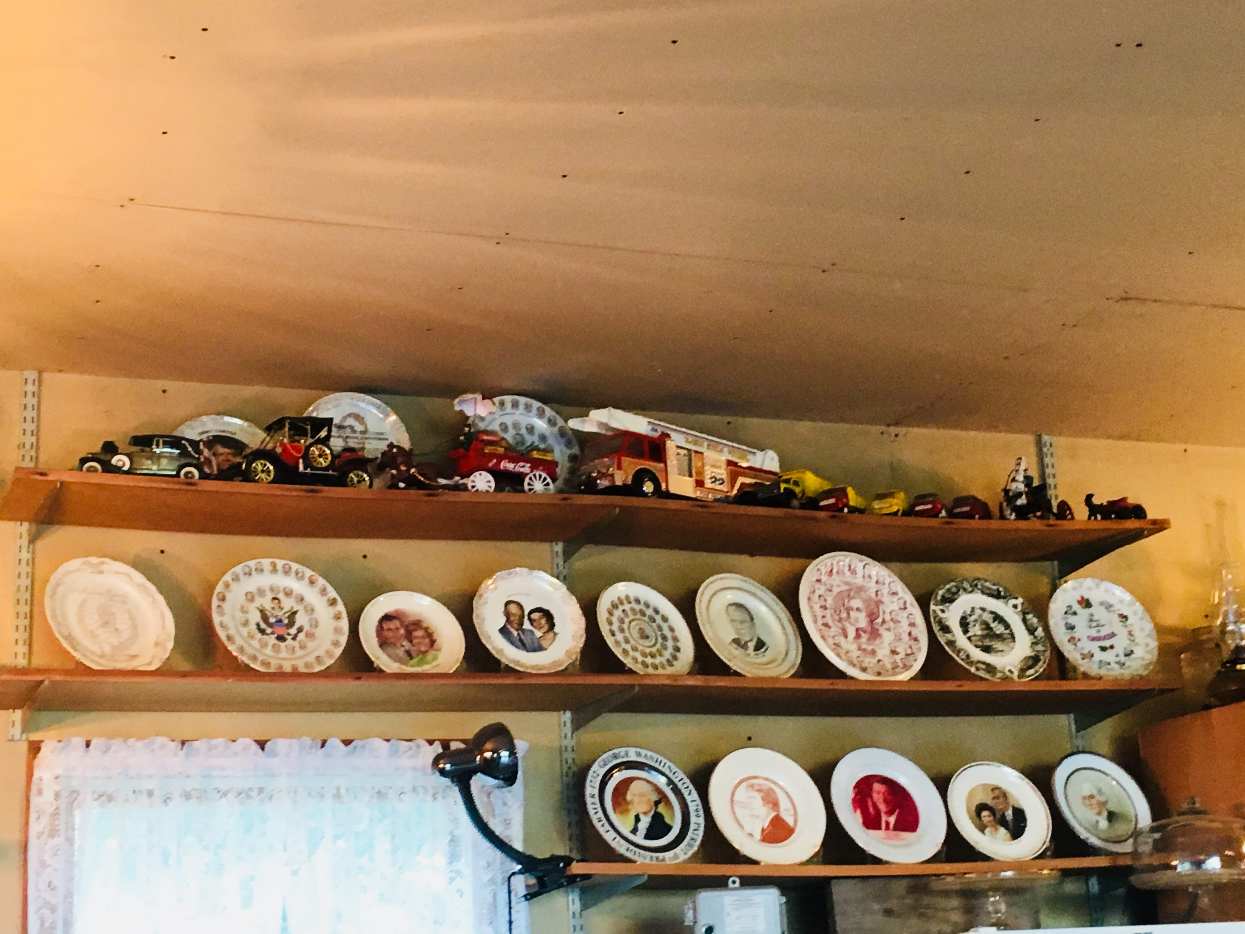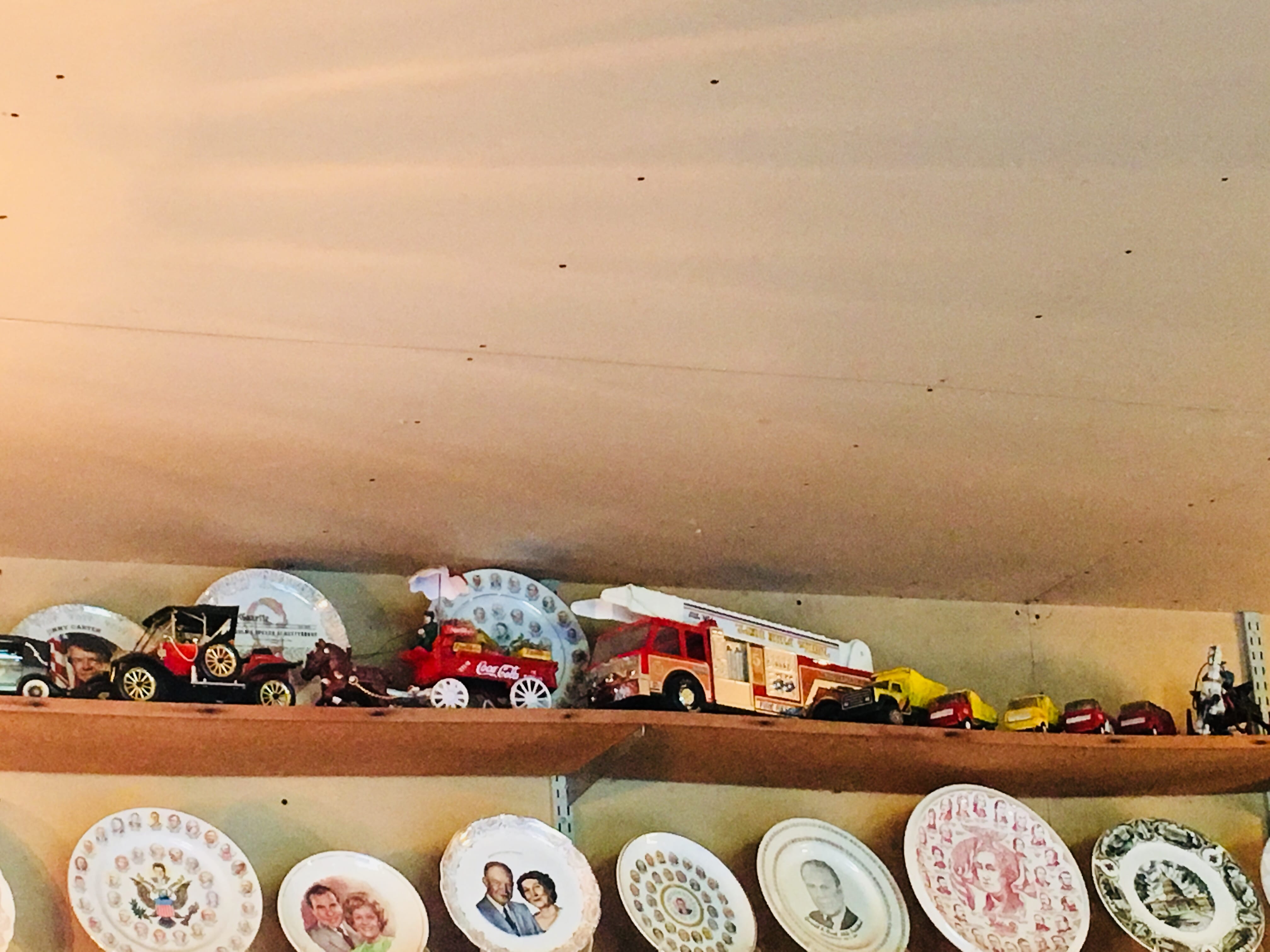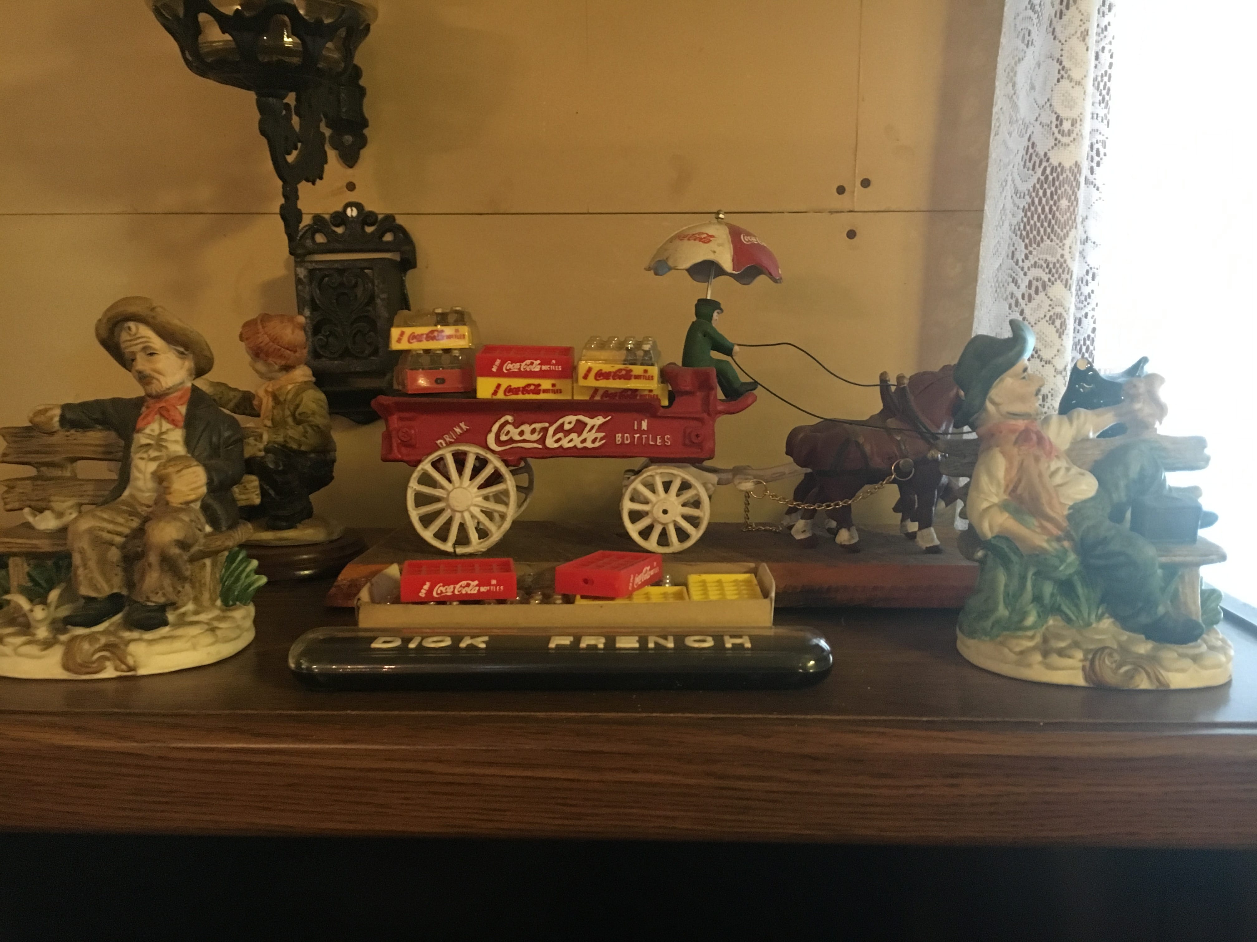 Oak Pedestal Table w/ Pressed Back Chairs; Dining Room Table & Cane Back Chairs; China Cabinet; Buffet; Dresser w/ Mirror; Lamp Table; Marble Top Plant Stand; Wood Desk; School Desks; Waterfall Cedar Chest; Trunks; Cast Iron Patio Furniture; Tiered Plantstands; Console Radio; Western Radio; Farnsworth Radio; Plymouth Mantle Clock; Cuckoo Clock; Anniversary Clock; Master Crafters Clock; Oil Lamps; Oil Lamps w/ Cast Iron Bracket; Gone w/ Wind Lamp; Birdcage; Ped. Cake Plate; Hull; Fenton; Carnival; Alabaster Glass; Pitchers; Bells; Pitcher & Bowl; Ironstone & Brown Stoneware; Stemware; Tea Pots; Hand Painted Porcelain; Avon pcs.; Glass Shoes; Norman Rockwell Cup; Owl & Bird Figurines; Snow Globes; Music in Motion Figurines; Collector Plates; Quincentenaries Presidential Plates; Spirit Of 76’ Plate; Candlestick Telephone; Western Elec. Wood Wall Phone; Vintage Cameras; Typewriter; Picnic Basket; Spittoon; Copper Boilers; Apothecary Bottles, Akron IN; Canning Jars inc. Blue; Glass Butter Churn; Arrowheads; Indian Stones; Axe Heads; Pocket Knives inc. Case & Barlow; Lightning Rods & Balls; Cast Iron Bell; Sambo Sprinkler; Chrome Fire Extinguishers; Parking Meter; Stoplight; Platform Scale; Double & Single Trees; Pitcher Pump; Barn Pulleys; Scythe; Wood Torch; Oilers; Hand Crank Corn Sheller; Cherry Pitter; Apple Peeler; Reel Mower; Barn & RR Lanterns; Candle Molds; Match Holder; Lunch Pail; Cow Bells; Hanging Scale; Lil Red Wagon; Adv. & Street Signs; Sled; Root Beer Barrel; Spring Seat; Hay Trolley; Ox Yoke; Crosscut Saw; Hand Saws; Buck Saw; Broad Axe; Barn Beam Augers; Draw Knives; Grain Cradle; Ice Tongs; Egg Basket; 1927 License Plates; Mailboxes; Hand Tools; Lard Press; Corn Jobber; Block & Hand Planes; Hay Forks; Hay Knife; Galvanized Sprinkling Cans; Milk Crates; Milk Cans; Kitchen Scale; Vintage Books inc. School & Time Life; Engineering Books; Fulton County History Books; Horn; Mannequin; Vintage Hats Men & Women; Linens; Porcelain Dolls; Antique Ventriloquist Doll; Dress Form; Camel Saddle; Cast Iron Door Stop; Model Cars; Farm Toys; Tonka Toys inc. Fire Truck; Cast Farm Toys; Toy Gas Pumps; Marbles;
