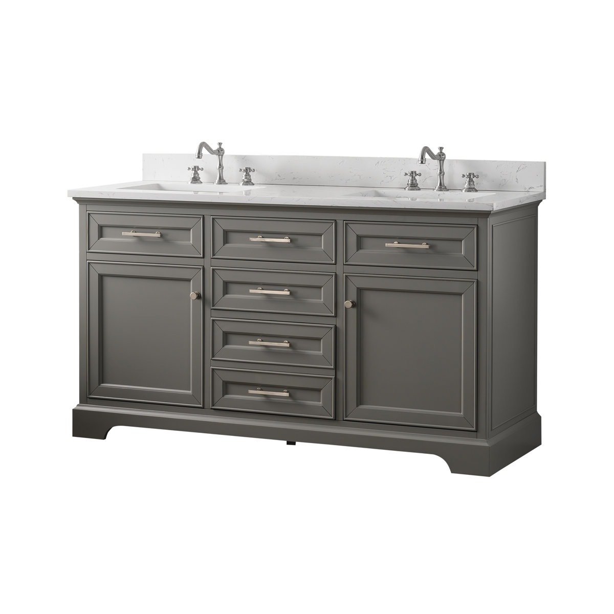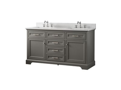 117 Gray Double Sink Bathroom Vanity with Carrara-Style Countertop and Storage some damage. 60in W X 22in D
