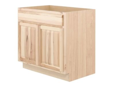 236 Unfinished Wood Base Cabinet 36” W x 34 1/2” T x 2’ D. Cracked