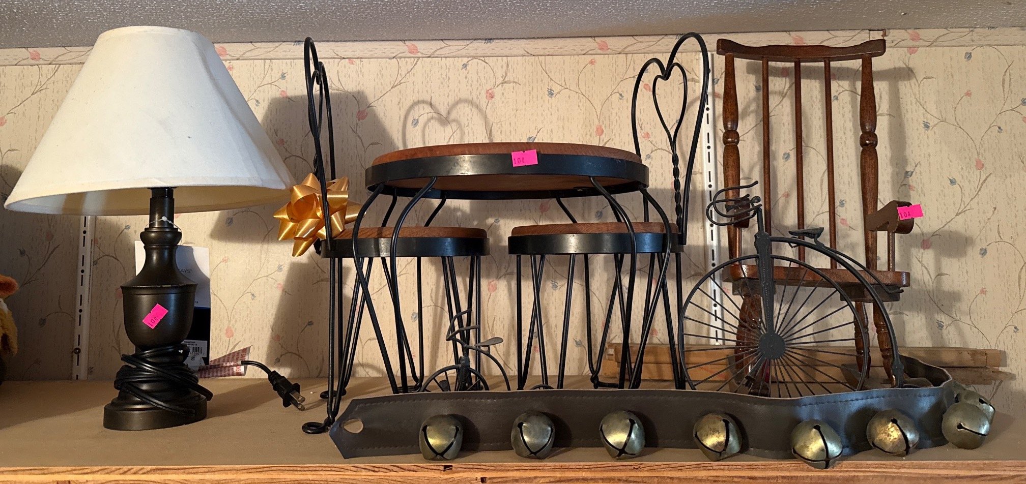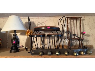 104 Metal Miniature Furniture, Wooden Rocking Chair, and Table Lamp