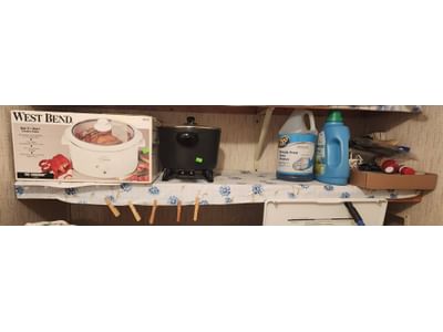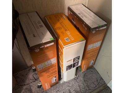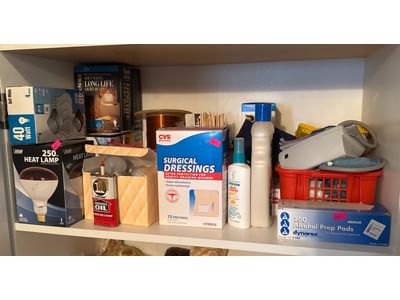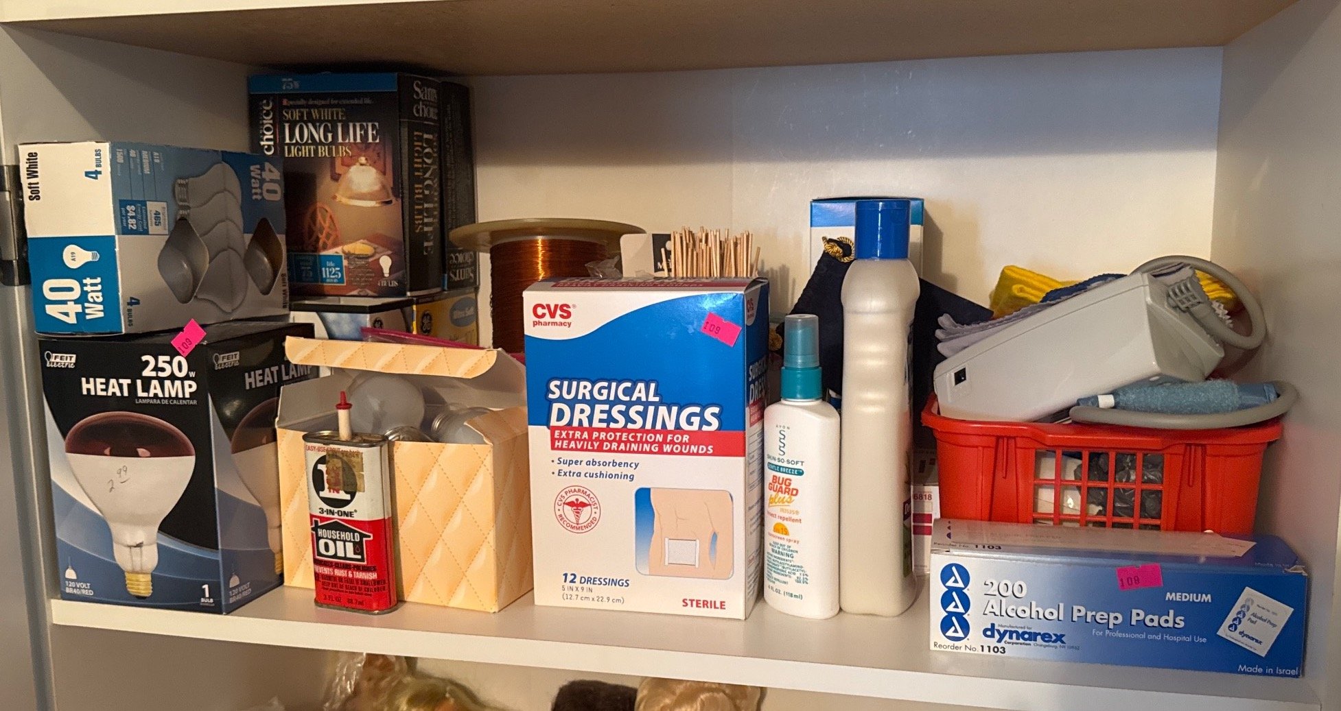 109 Household and Medical Supplies with Heat Lamp and Electrical Items