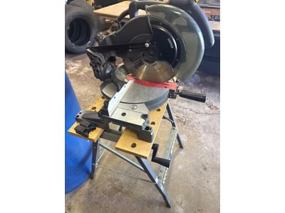 25 Sears Miter Saw with Motor on Metal Work Bench