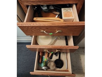 422 Laminated Wood Cabinet with Shelves and Drawer (cabinet only, contents not included), 53.5x49x15?
