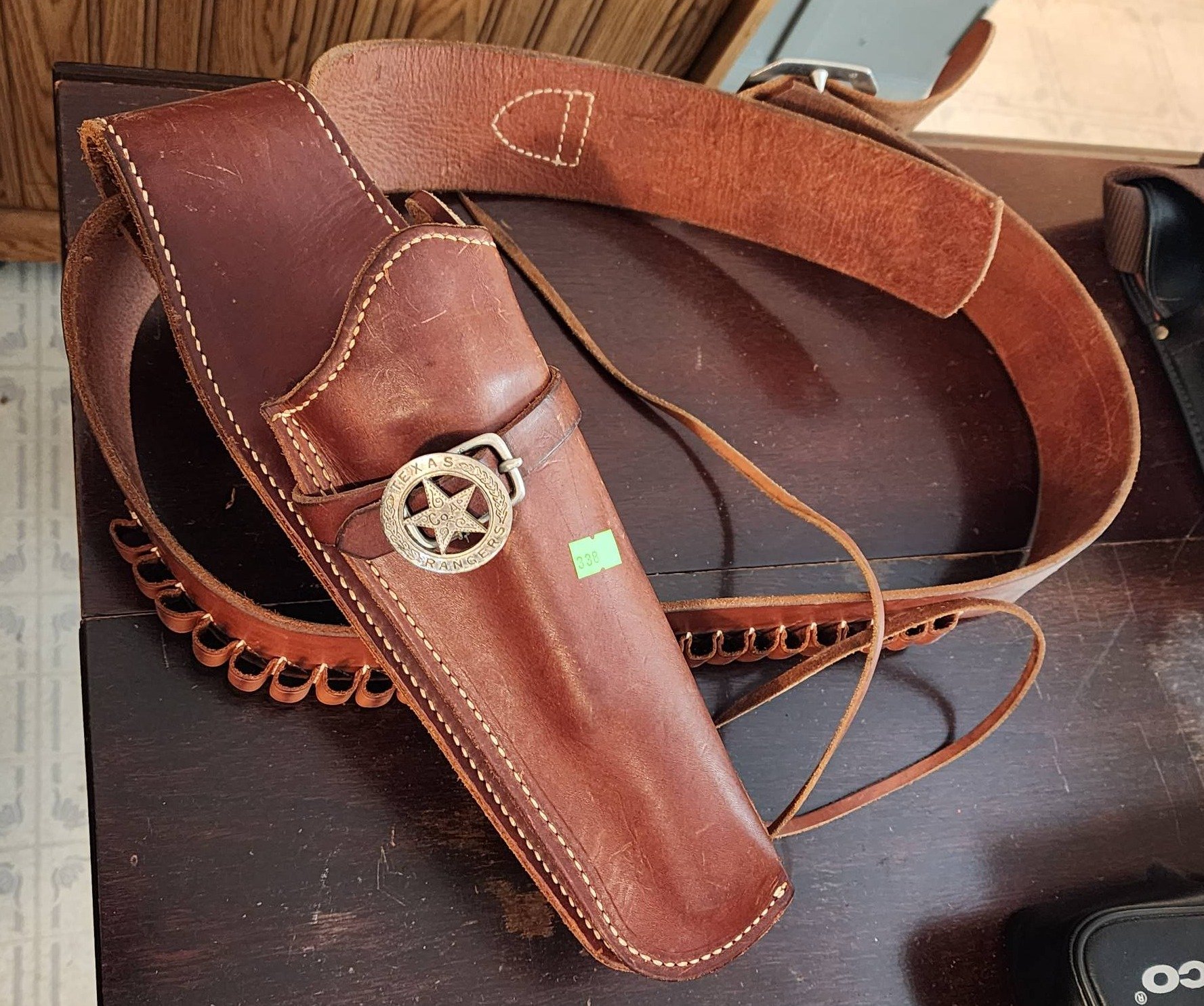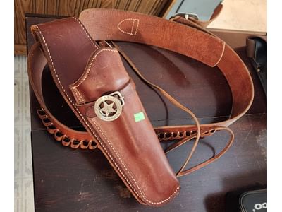 338 Leather Gun Belt and Holster by The George Lawrence Co. with Texas Rangers Buckle