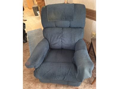 402 Blue Upholstered Recliner Chair with Ribbed Pattern