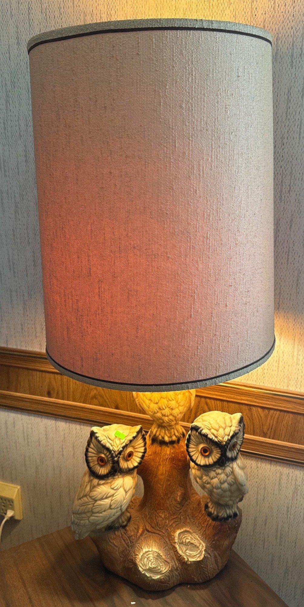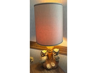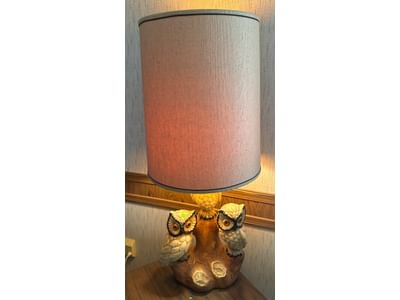 430 Table Lamp with Owl Motif Base and Cylindrical Shade, 39.5” Tall