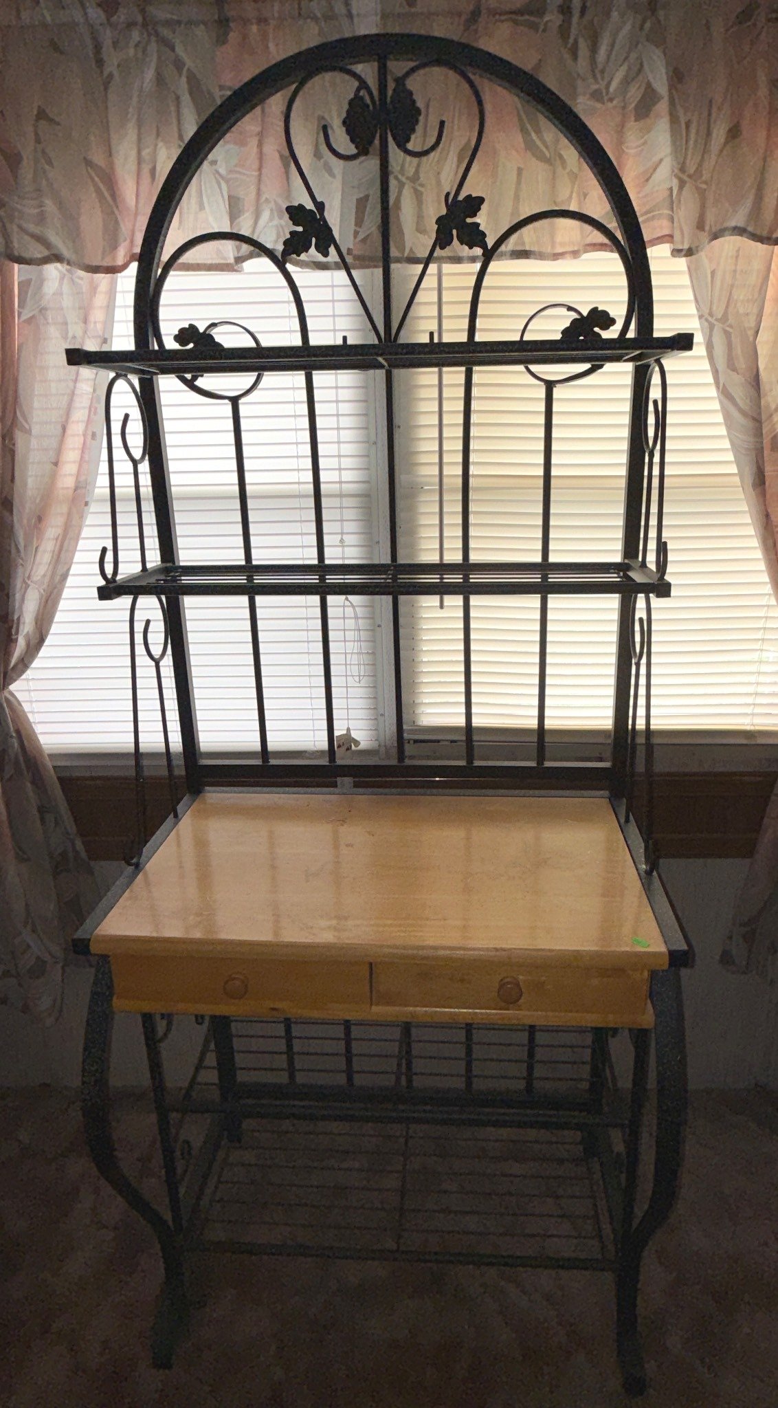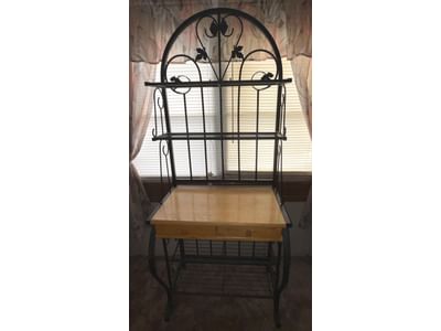 406 Metal Baker’s Rack with Wood Surface and 2 Drawers, 77.5x31x19?