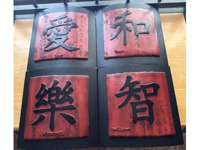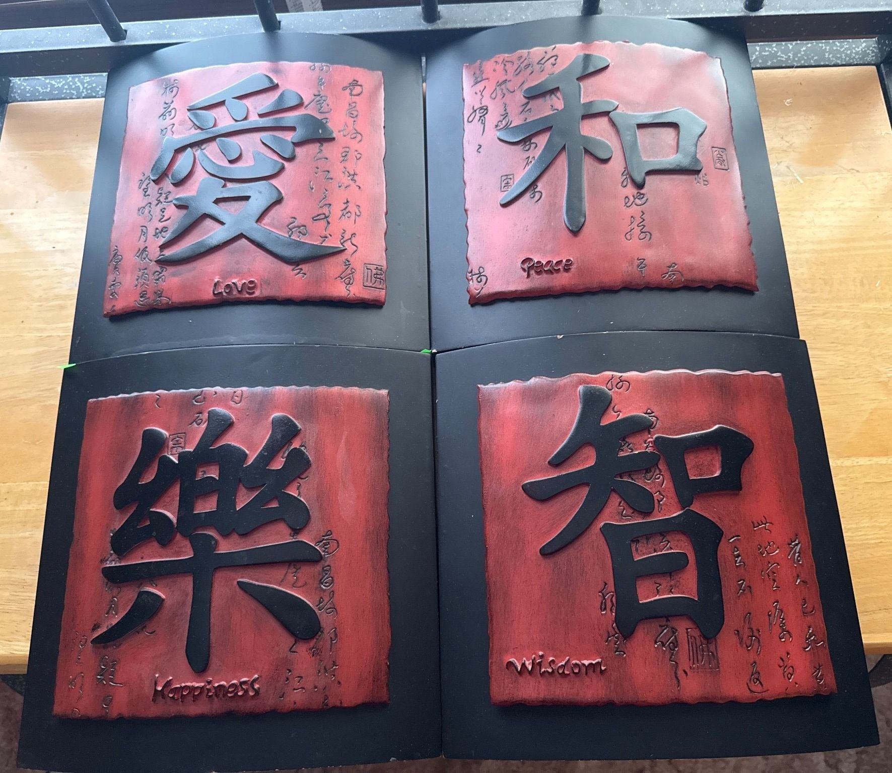 407 Four Ceramic Tiles with Chinese Calligraphy and English Translations