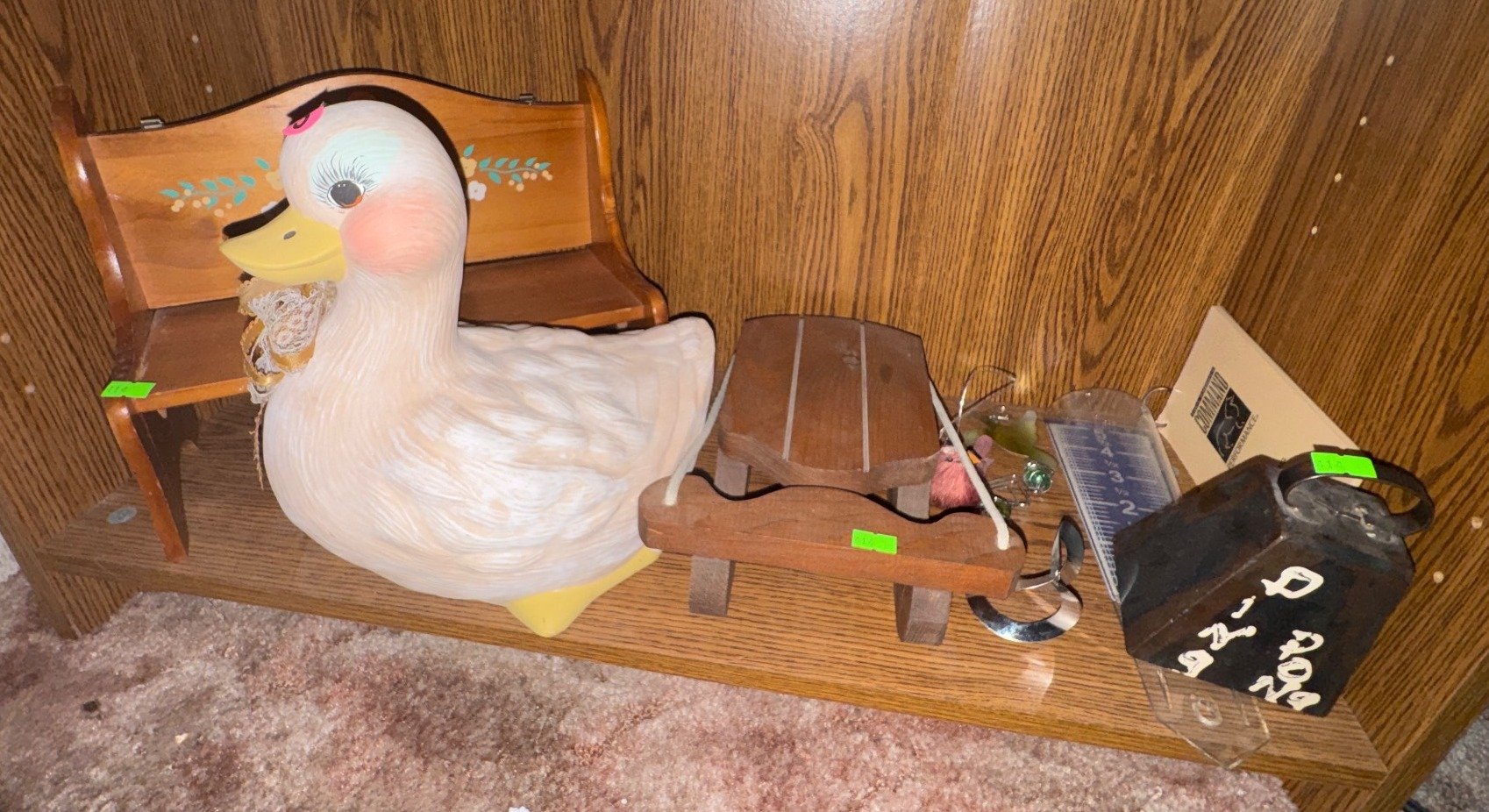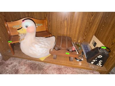 414 Home Items Inc. Duck Figurine, Painted Wood Bench, and Accessories