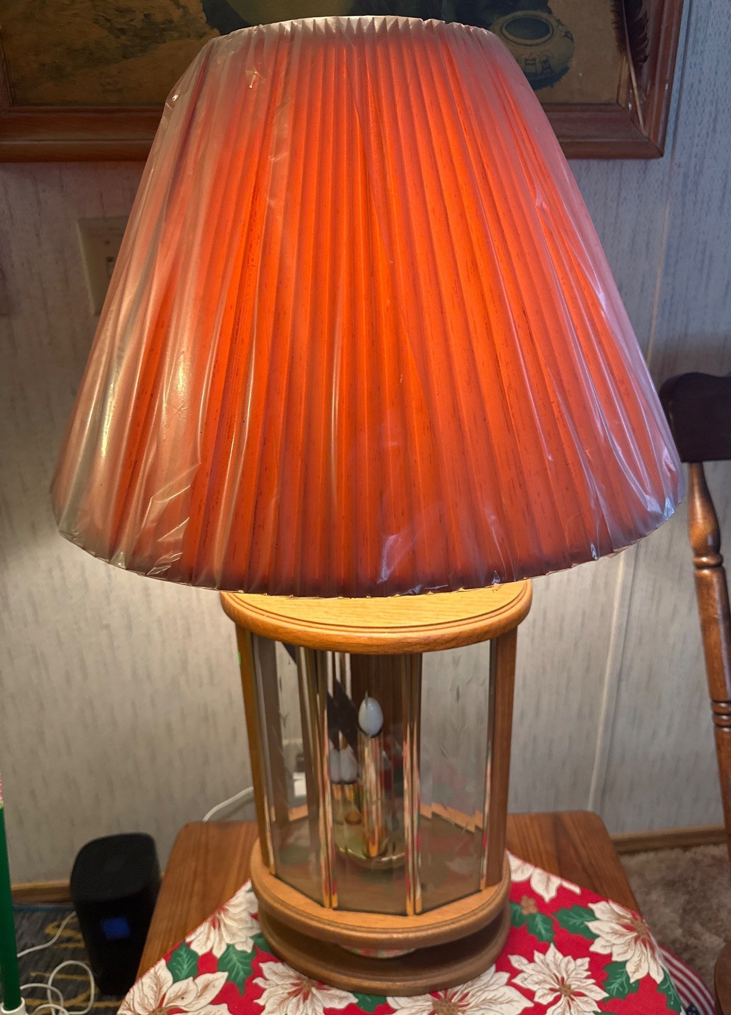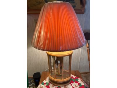 423 Table Lamp with Octagonal Glass Base and Red Pleated Shade, 34?