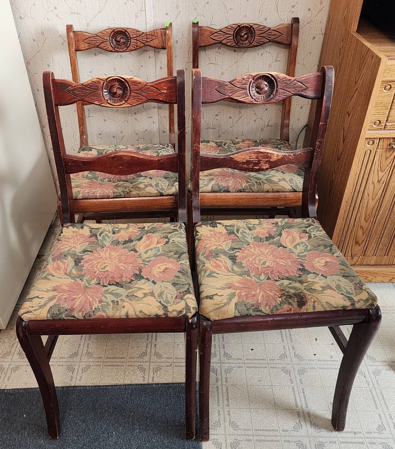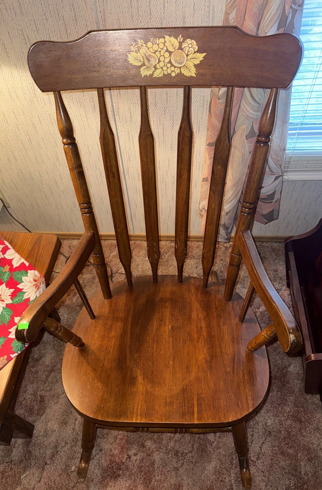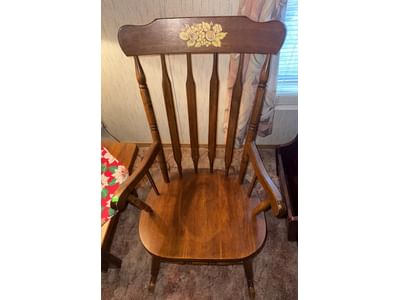 425 Carved Wood Rocking Chair with Spindle Backrest and Floral Detail, 40x23x18?