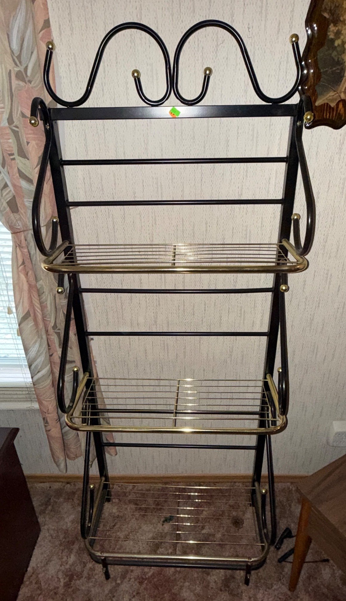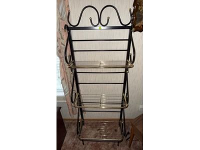428 Black Metal and Brass-Tone 3-Tier Shelf Rack, 61x22x9?