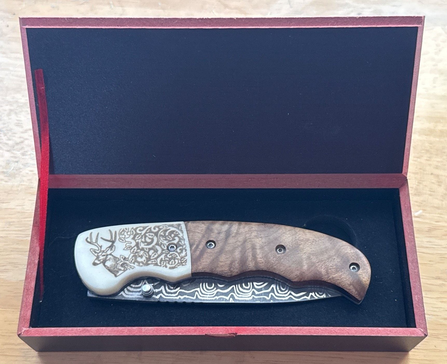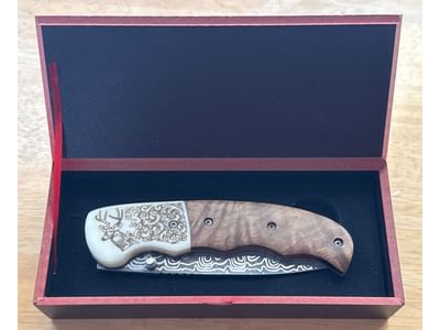 436 Big Game Hunting Knives by American Mint: Damascus Blade Knife with Display Box